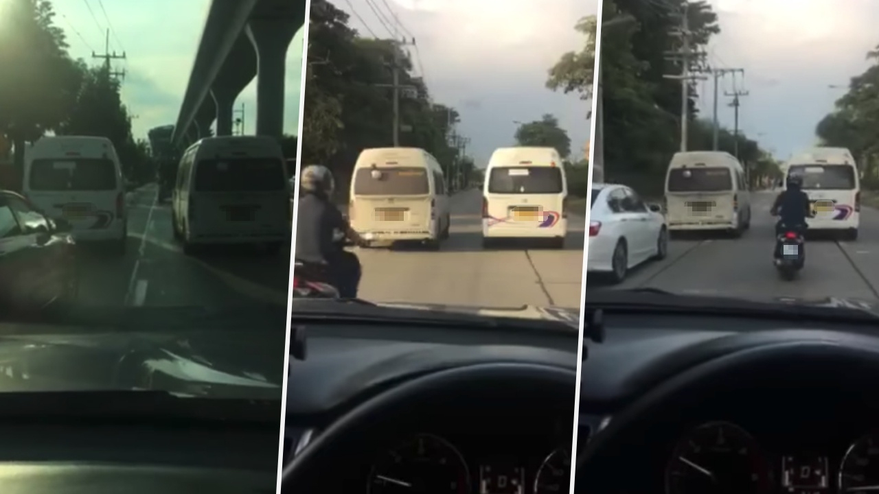 เพจดังโพสต์คลิปจากผู้ใช้รถใช้ถนน เจอรถตู้โดยสาร 2 คันขับขนานขวางรถตามหลัง ไปไม่ได้จนต้องบีบแตรเตือน ไม่รู้คุยหรือทะเลาะอะไรกัน