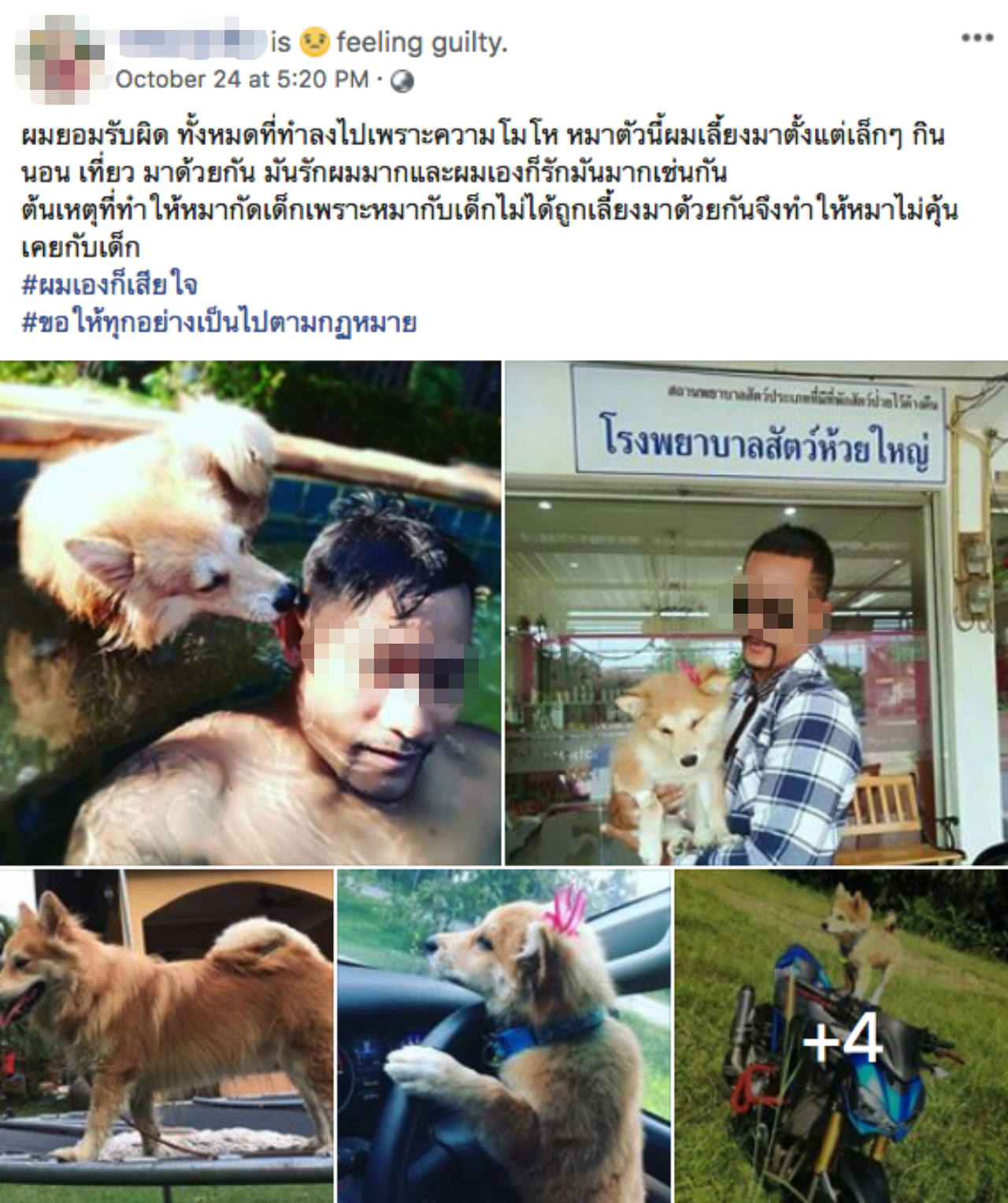 “ผมยอมรับผิด ทั้งหมดที่ทำลงไปเพราะความโมโห หมาตัวนี้ผมเลี้ยงมาตั้งแต่เล็กๆ กิน นอน เที่ยว มาด้วยกัน มันรักผมมากและผมเองก็รักมันมากเช่นกัน ต้นเหตุที่ทำให้หมากัดเด็กเพราะหมากับเด็กไม่ได้ถูกเลี้ยงมาด้วยกัน จึงทำให้หมาไม่คุ้นเคยกับเด็ก #ผมเองก็เสียใจ #ขอให้ทุกอย่างเป็นไปตามกฎหมาย”.