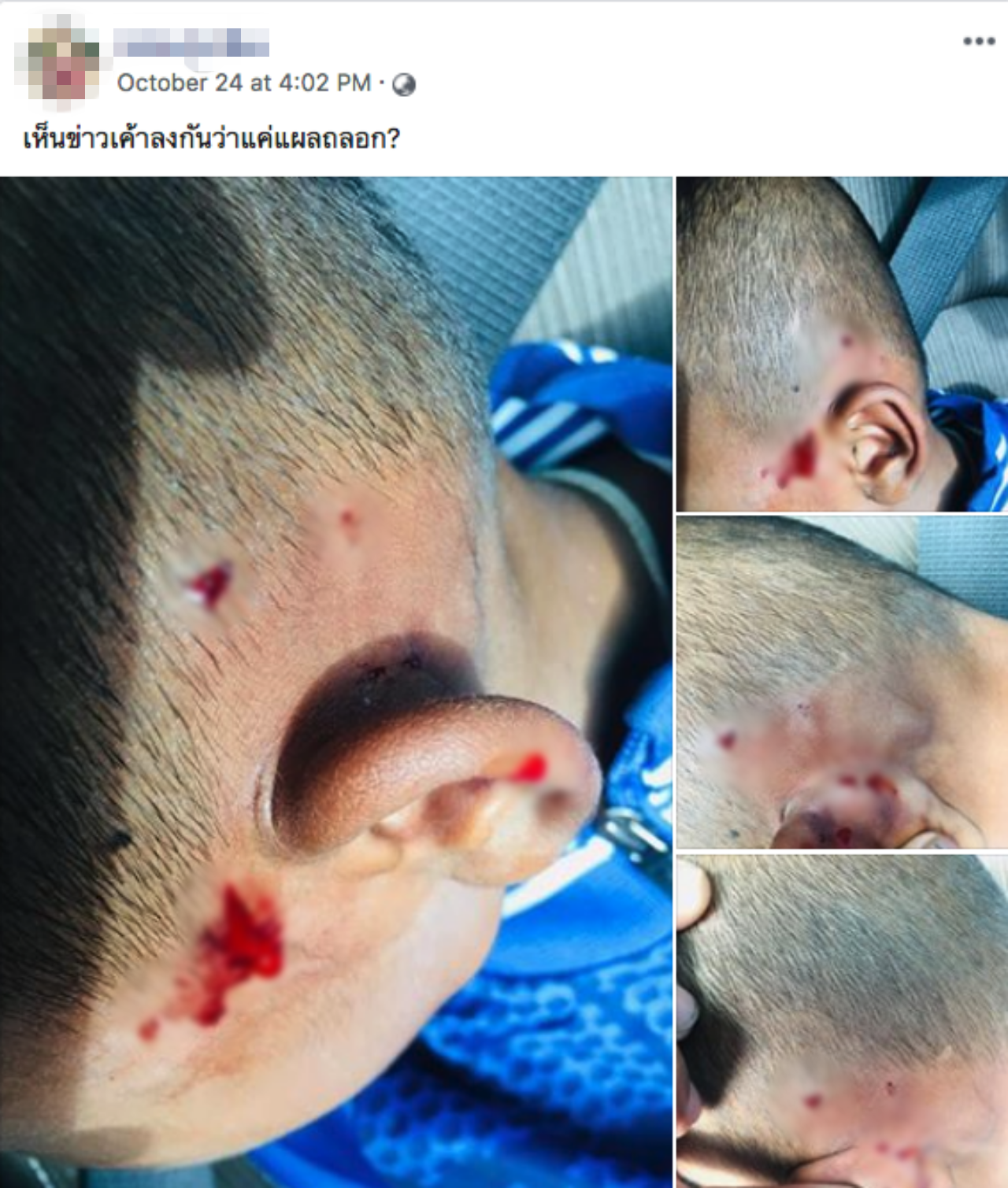 ล่าสุด จากการตรวจสอบเฟซบุ๊กของพ่อเลี้ยงรายนี้ พบว่าเมื่อวันที่ 24 ต.ค. 61 ที่ผ่านมา ได้โพสต์ภาพบาดแผลจากคมเขี้ยวหลังลูกชายถูกสุนัขกัดบริเวณศีรษะและกกหู ให้ดูว่าไม่ใช่เพียงแค่แผลถลอกอย่างที่เป็นข่าว พร้อมกันนี้เจ้าตัวยังได้โพสต์ภาพถ่ายคู่สุนัขที่ถูกทำร้ายจนตาย และระบุข้อความว่า