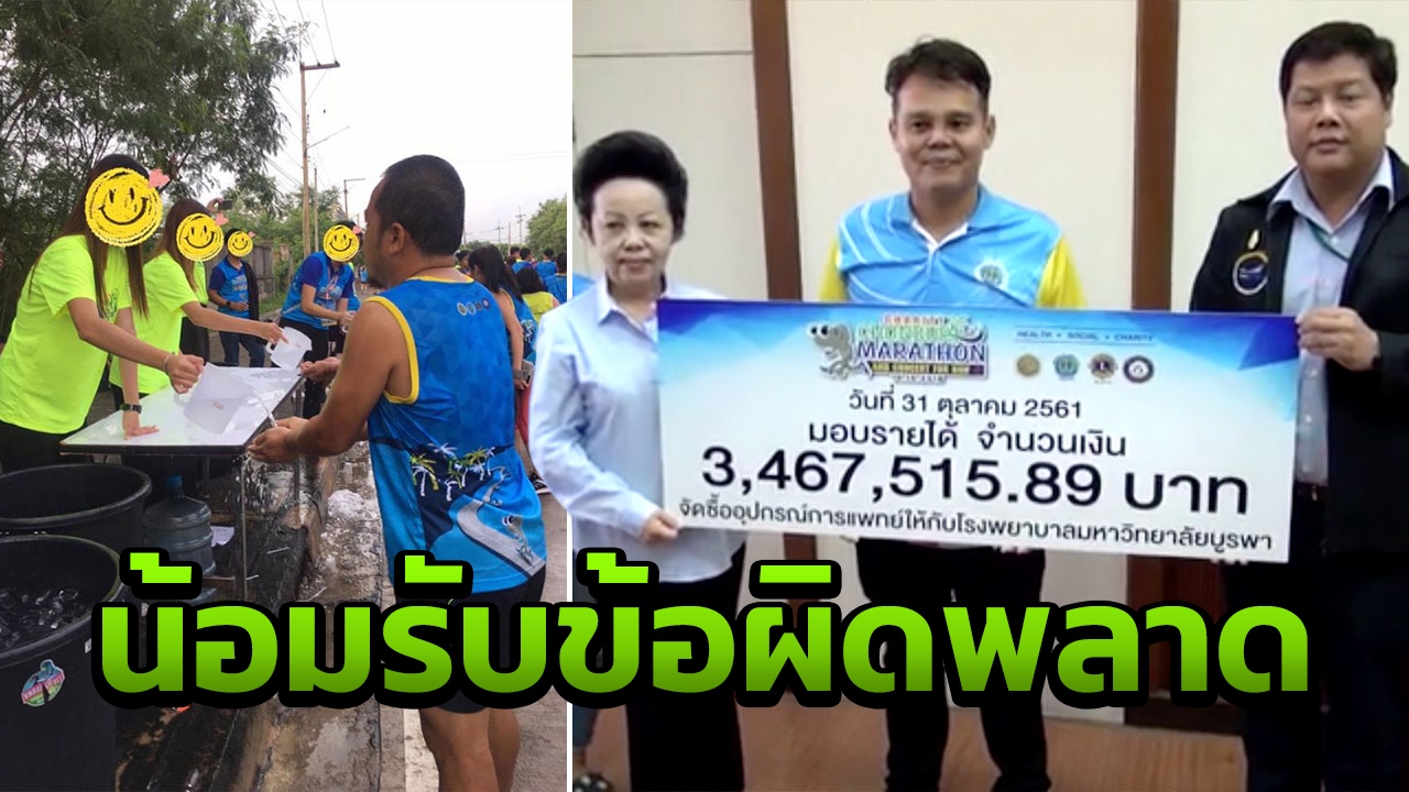 เคลียร์ดราม่า วิ่งมาราธอนไม่มีน้ำดื่ม ที่ชลบุรี ตัวแทนผู้จัดงาน มอบ 3.4 ล้าน รพ.มหาวิทยาลัยบูรพา พร้อมขอโทษในข้อผิดพลาดที่เกิดขึ้น พร้อมนำไปปรับปรุง หากมีการจัดกิจกรรมอีก ...