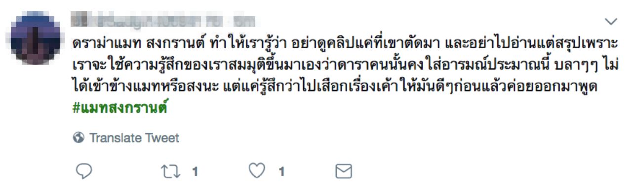 และที่ดูจะฮือฮา คงเป็นปฏิกิริยาของ แมท เมื่อถูกย้ำถามว่า ทำไมวันนั้นถึงบอกว่าไม่รู้จัก สงกรานต์ แต่แมทกลับออกอาการเสียงแข็งซะอย่างนั้น