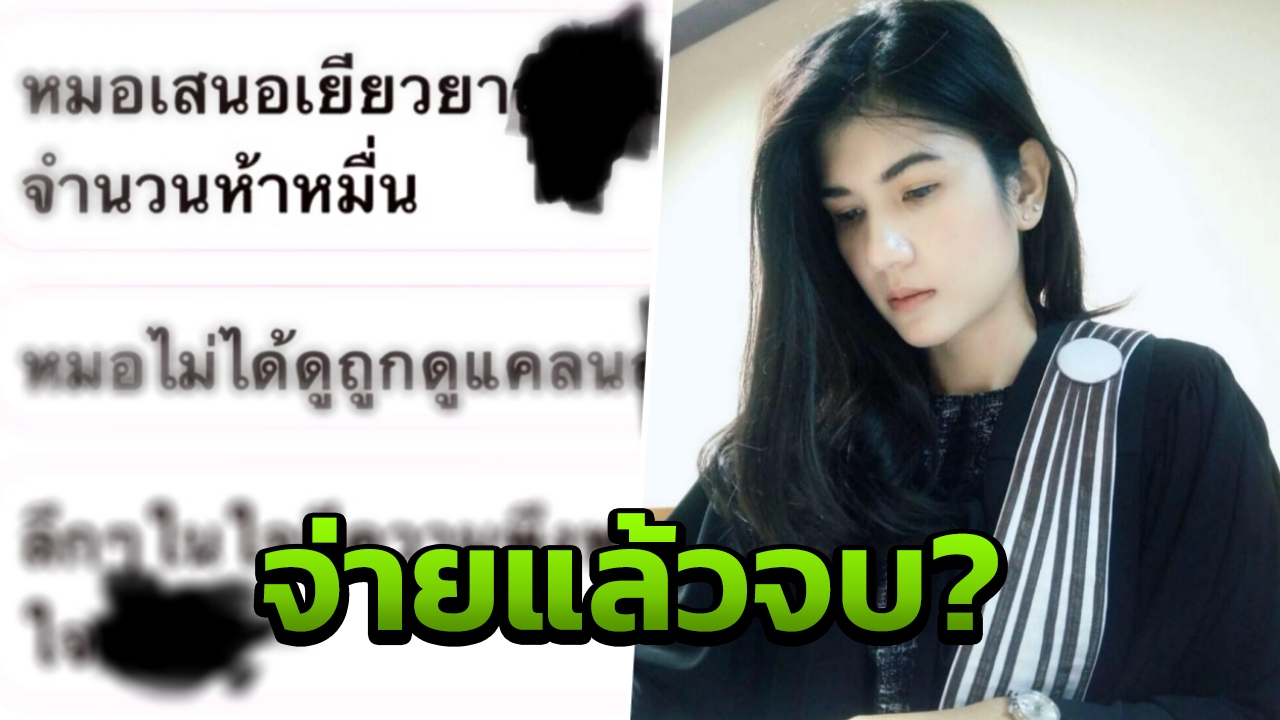 ทนายนิด้า เผยแชตหมอใหญ่ เสนอเงินเยียวยา 5 หมื่นบาท หลังโดนแฉใช้ของปลอมสอดใส่คนไข้ระหว่างตรวจภายใน อ้างทำเพื่อปลุกอารมณ์ลดความเจ็บปวด....