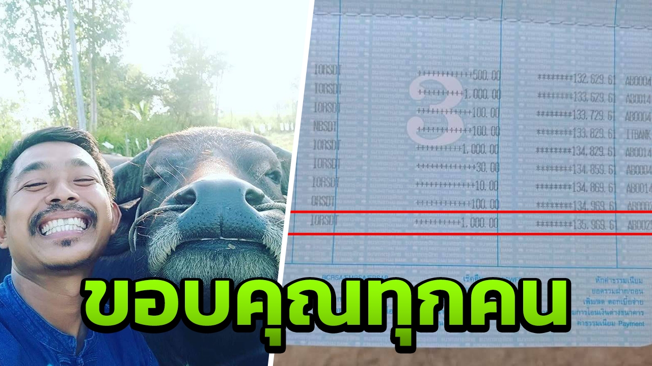 ขอขอบคุณสื่อต่างๆ และหน่วยงานต่างๆ ที่เข้ามาช่วยเหลือผม และขอขอบคุณเจ้าของทองคำที่ให้โอกาสผมและเจ้าทองคำได้อยู่ร่วมกันครับส่วนยอดเงินที่เกินผมอยากให้เพื่อนๆ ลงความเห็นเพื่อให้ทุกคนมีความสบายใจ ผมขอขอบคุณทุกคนที่มั่นใจในตัวผม ผมจะไม่ทำให้ทุกคนผิดหวังและจะสร้างรอยยิ้มให้ทุกคนได้เห็นต่อๆ ไปครับ..ขอขอบคุณทุกๆ คนมากๆ ครับ” ทำให้มีผู้เข้ามาให้กำลังใจเป็นจำนวนมาก