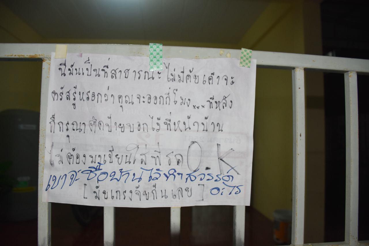 ล่าสุด ผู้สื่อข่าวไทยรัฐออนไลน์ ได้ลงพื้นที่ไปยังบ้านของ นางชูศรี ทำกินรวย อายุ 59 ปี ชาวจังหวัดนครปฐม เป็นเจ้าของบ้านที่ถูกคนจอดรถขวางส่ง จม.ด่า เปิดเผยว่า ช่วงกลางดึก มีรถยนต์เก๋งสีขาว เป็นรถของคนในละแวกนี้ นำรถมาจอดขวางปิดทางเข้าออกประตูบ้าน จนไม่สามารถนำรถจักรยานยนต์ของตัวเองออกจากบ้านได้ เพราะทุกๆ เช้าจะออกไปทำงานเช้ามืดเวลา 05.00 น.