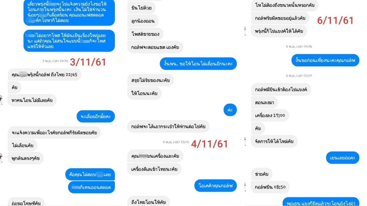 เมื่อวันที่ 21 พ.ย. 61 ผู้สื่อข่าวรายงานว่า พบหญิงผู้ใช้เฟซบุ๊กรายหนึ่งโพสต์ข้อความในลักษณะเตือนเรื่องการซื้อของออนไลน์ โดยเธอเล่าว่า มีการติดต่อกับสจ๊วตสายการบินหนึ่ง ชื่อ กอล์ฟ ซึ่งเจ้าตัวมีการโพสต์ขายกระเป๋าแบรนด์เนม เนื่องจากเห็นว่ามีหน้าที่การงานดีและพูดจาดีจึงเชื่อถือ ซึ่งตั้งแต่เมื่อวันที่ 22 ต.ค.ที่ผ่านมา มีการสั่งซื้อกระเป๋าผ่านสจ๊วตคนนี้พร้อมโอนเงินให้จำนวน 73,000 บาทในวันรุ่งขึ้น อีกทั้งเมื่อถามว่ามีขายส่งเลยหรือไม่ อีกฝั่งก็บอกว่าพร้อม แต่เมื่อจะให้แมสเซ็นเจอร์ไปรับ เจ้าตัวก็บ่ายเบี่ยงอ้างว่าของอยู่ที่ต่างจังหวัด วันต่อมาก็บอกว่าติดบิน