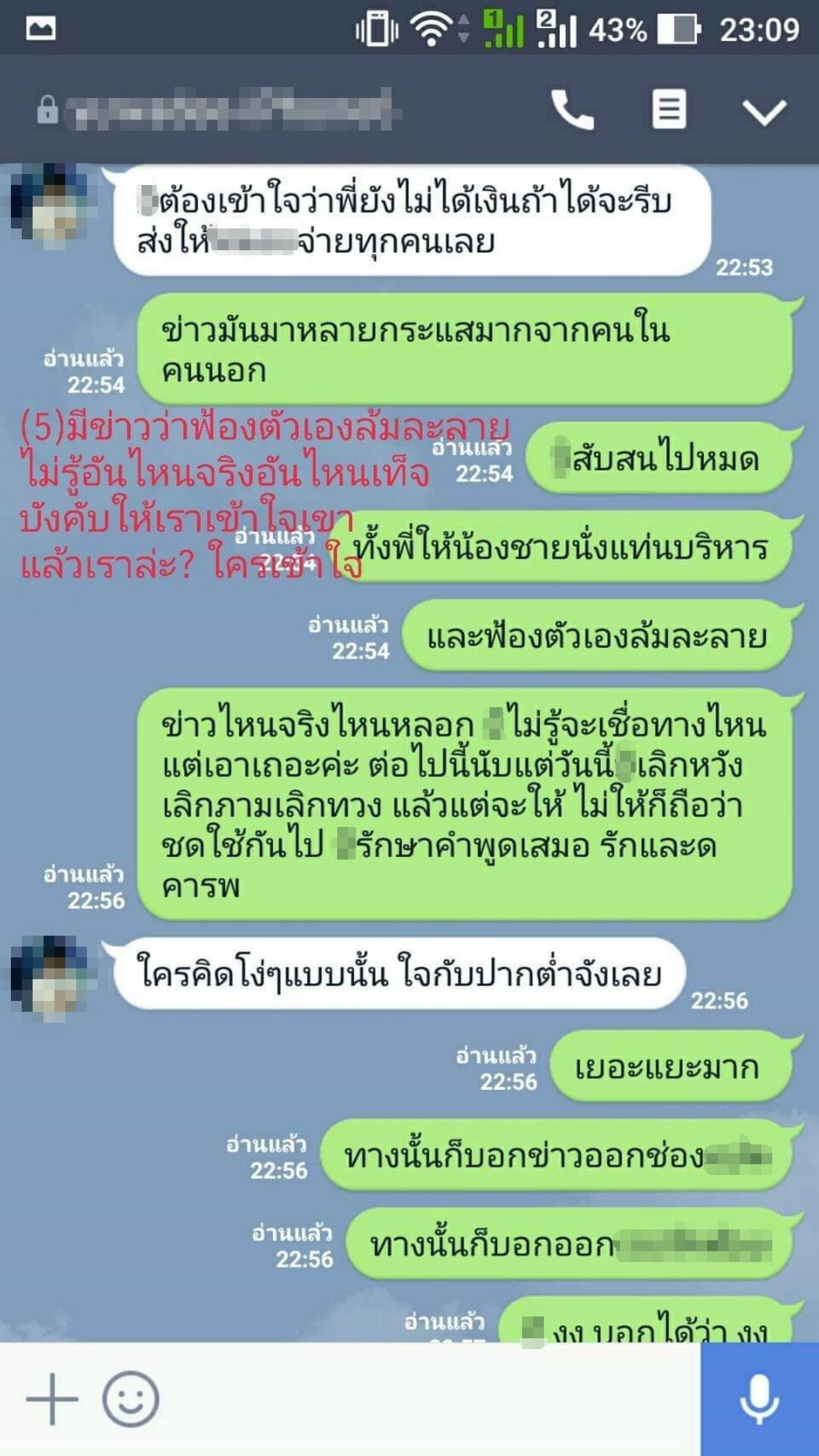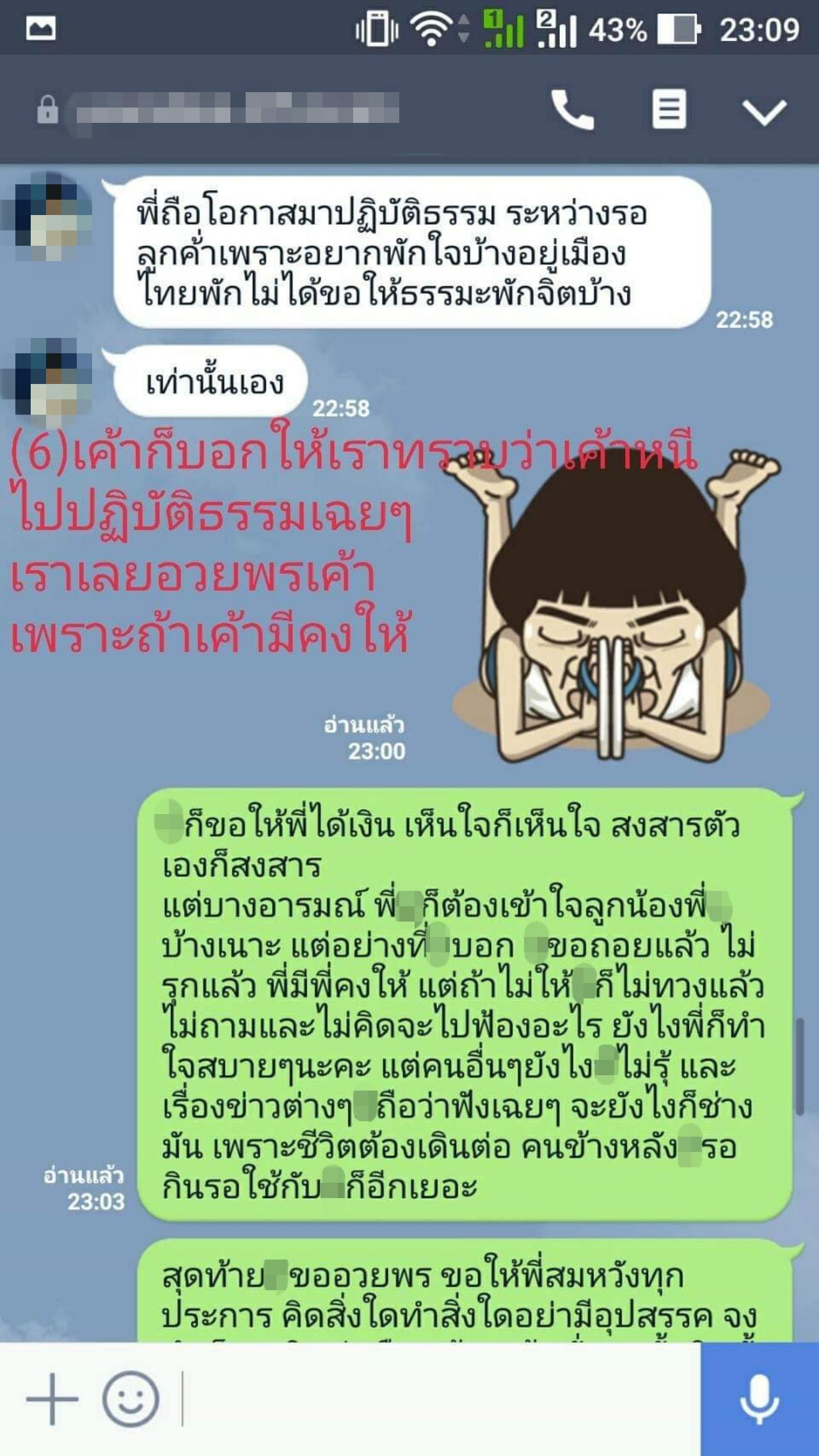 พร้อมกันนี้ ผู้โพสต์ได้เปิดเผยการพูดคุยผ่านข้อความระหว่างผู้โพสต์และอดีตผู้บริหารหญิงคนนี้ด้วย โดยขอนำมาอ้างอิงเพียงบางส่วน
