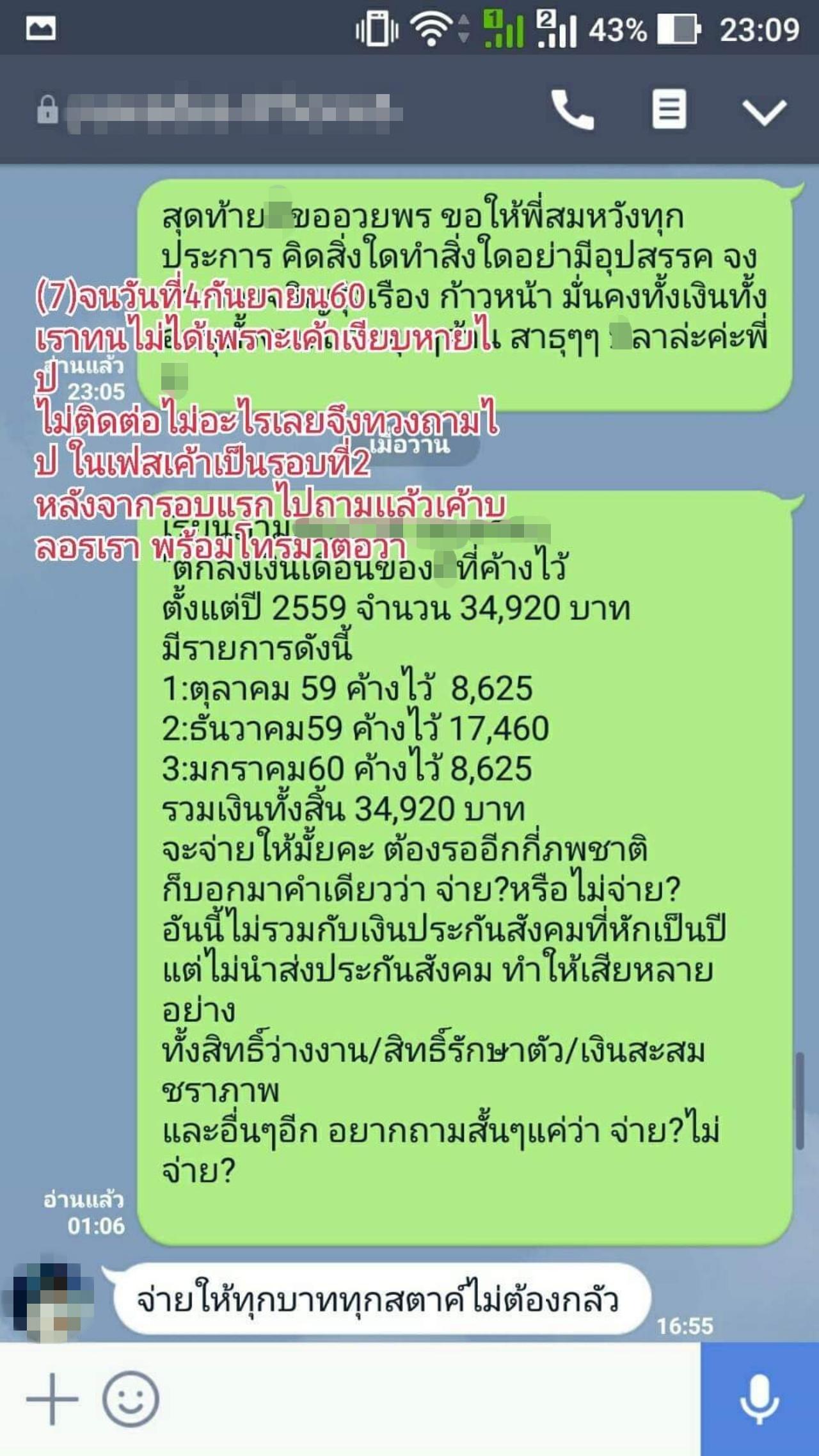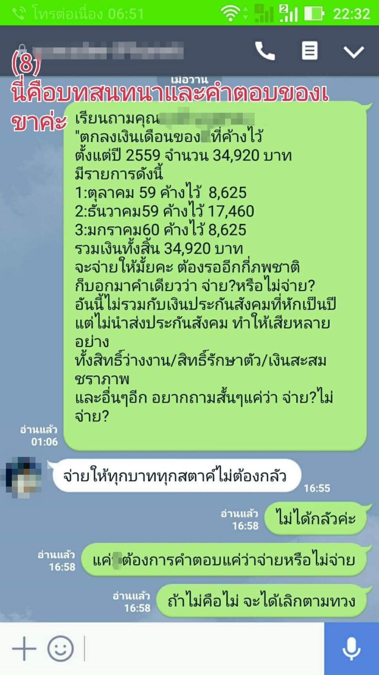 อดีตลูกจ้างรายหนึ่ง โพสต์ทวงถามอดีตผู้บริหารหญิงเก่งเจ้าของสื่อใหญ่ หลังติดค้างเงินเดือนมานานถึง 2 ปีกว่า ส่งข้อความหากลับถูกบล็อก