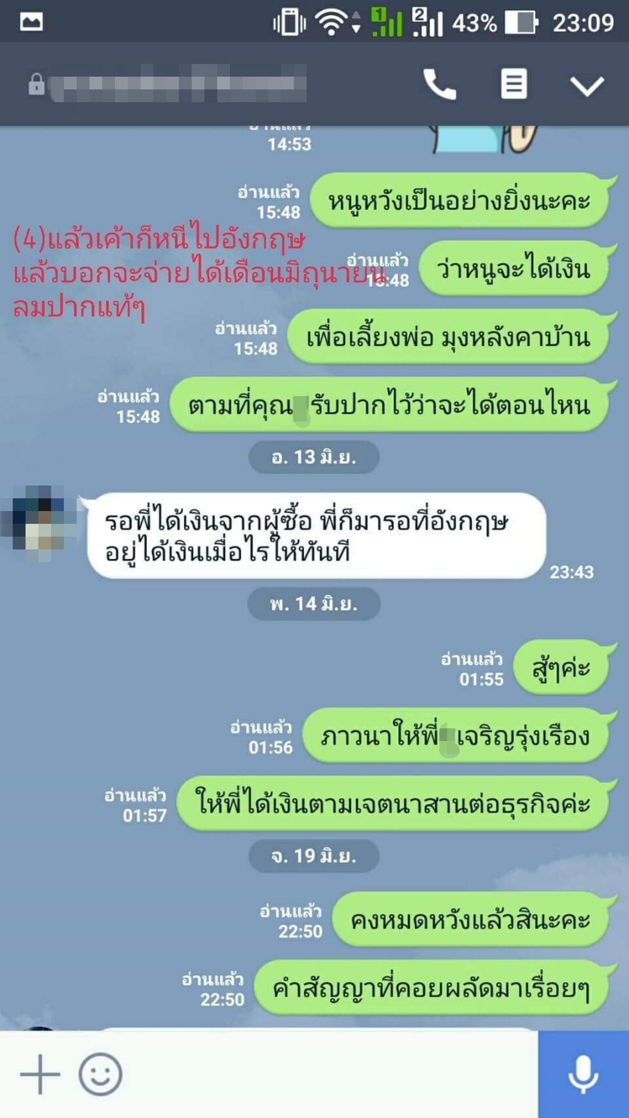 “ผมต้องหยิบยืมเงินคนอื่นเพื่อไปทำงาน หวังจะเอาค่าจ้างมาใช้คืน แต่คุณที่จ้างผมกลับเบี้ยวค่าจ้าง ขอความเป็นธรรมกับกรมแรงงาน ก็ยังเงียบๆ อยู่ ผู้เดือดร้อนไม่ได้มีผมคนเดียว อดีตพนักงานเป็น 10 กว่าคน ขายฝัน ให้คำมั่น คำสัญญาต่างๆ แล้วหนีหายไปใช้ชีวิตมีความสุขสบาย คืออะไรครับ อยากให้กลับมารับผิดชอบนะครับ อย่าทำแบบนี้เลย... เจ้าทุกข์หลายราย มีทั้งคนธรรมดา มีทั้งแม่ชี คุณอย่าแบบนี้เลยครับ ขอร้องล่ะครับ พวกผมต้องกินต้องใช้กัน สงสารพวกผมเถอะนะ”