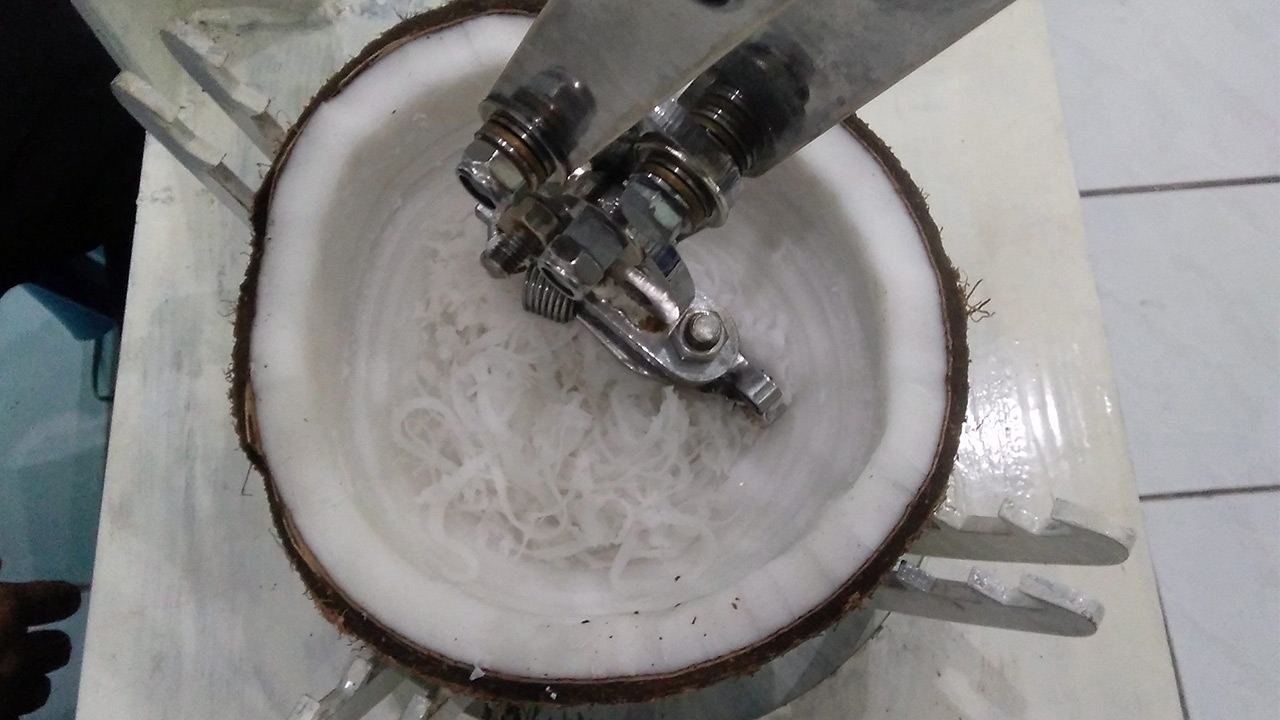 ที่สำคัญได้เส้นมะพร้าวขนาดเท่ากันทุกเส้น ได้ปริมาณเนื้อเยอะขึ้น ขูดมาแล้วไม่มีเนื้อกะลาติดมากับเนื้อ ทำให้ขนมไทยที่ต้องใช้มะพร้าวโรยรูปร่างหน้าตาสวยงามขึ้น