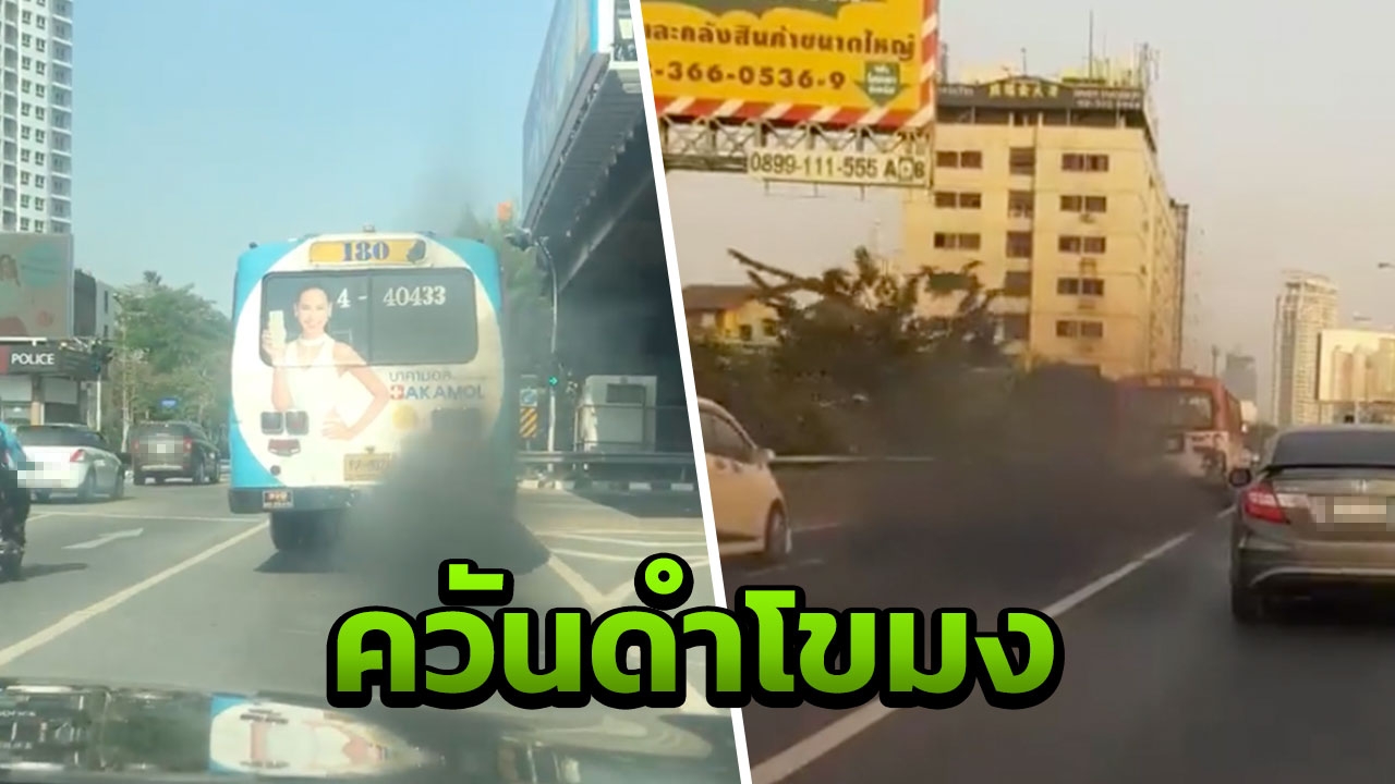 ผู้ใช้เฟซบุ๊ก 2 ราย โพสต์คลิปพบเจอรถเมล์ควันดำโขมงขณะวิ่งบนถนน หวังภาครัฐแก้ไขปัญหาอย่างจริงจัง