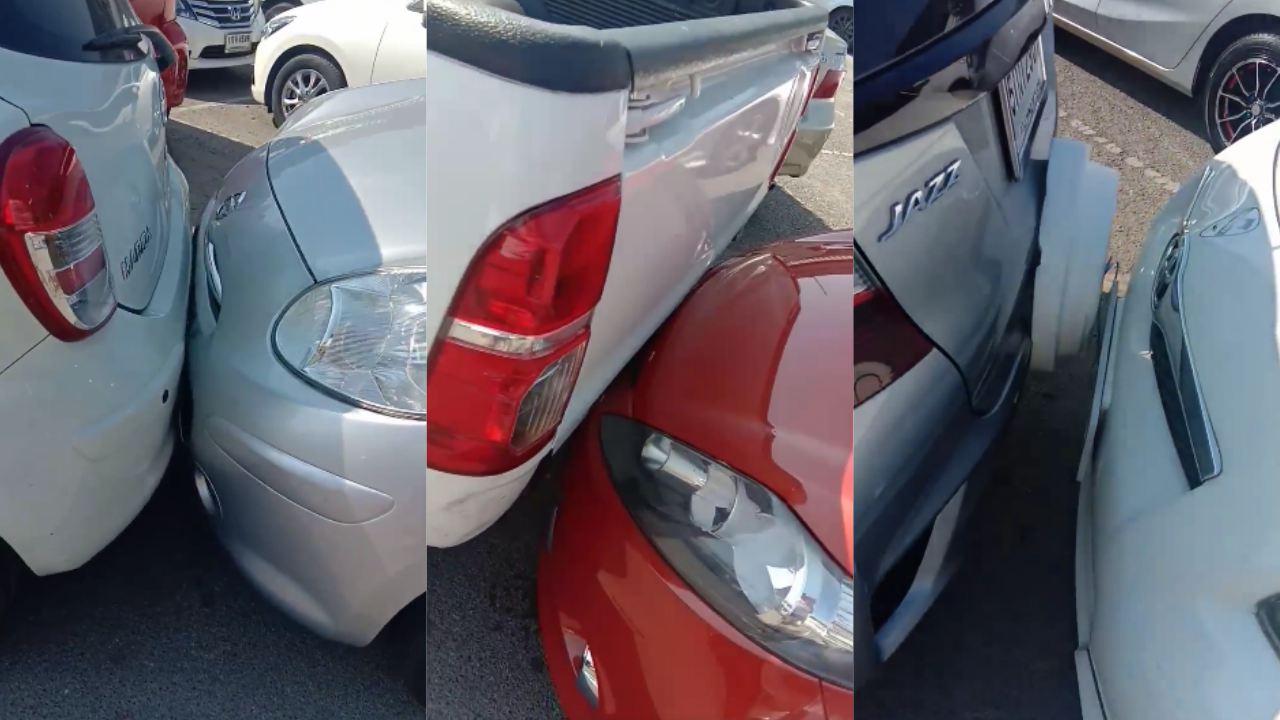 Peera Pajavej : ที่นี่เคยเห็นลุงคนนึงจอดติดกันแบบนี้ล่ะ แกไม่ลงมาเข็นนะ รถแกเก่าแล้ว แกขับดันหน้าดันหลังจนออกไปได้ฝากรอยไว้กับรถที่จอดติดกับแก