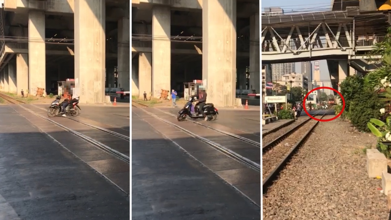 หนุ่มโพสต์คลิปพบเห็นมอเตอร์ไซค์ฝ่าไม้กั้นทางรถไฟสถานีมักกะสัน ไม่สนสัญญาณเตือน เผยเจอประจำ วอนเคารพกฎจราจร