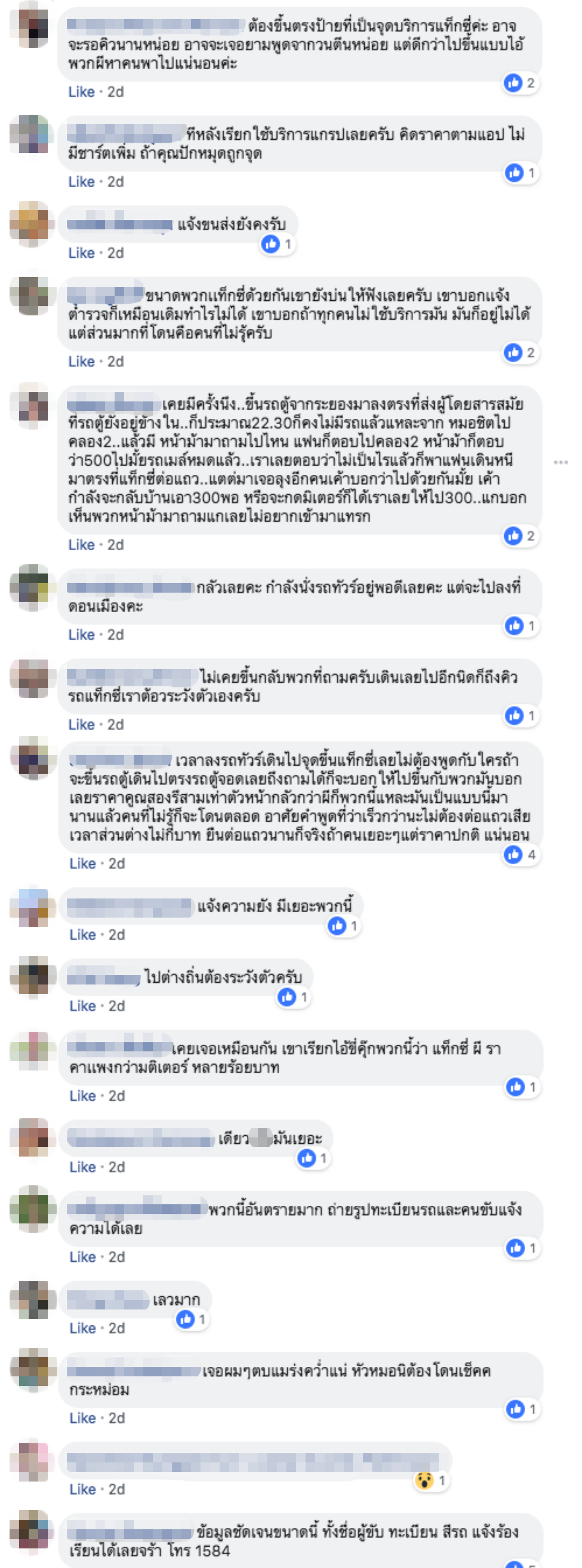 “เขาก็พาเราเดินอ้อมลัดตลาดมาเจอเพิงสังกะสีลานกว้าง ถนนกำลังสร้าง แล้วก็ให้เราขึ้นแท็กซี่ ถามเราขึ้นทางด่วนไหม 50 บาทเราก็ขึ้น เราถามเก็บตามมิเตอร์นะ เขาตอบว่าครับแต่วันนี่ต้องชาร์จ 80 บาท เพราะตรงเสาร์-อาทิตย์ จึงตอบตกลง ปรากฏว่าเขาเก็บเงินเรา 630 บาท เราบอกว่าแพง ปกติขึ้นสองร้อยกว่าบาท เราไม่ขึ้น เขาก็พูดนั่นนี่ และเราเองก็กลัวเพราะมองไปรอบๆ ข้างไม่มีรถเลย ฝากเตือนทุกคนอย่าหลงไปกับพวกหากินแบบนี้ ถ้าเขาจะถามเราเหมารถไปไหมเราจะไม่ว่าสักคำ เราขึ้นมาแล้วก็ถามเขาอีกว่าทำไมไม่วิ่งตามมิเตอร์ เขาบอกจ่ายเท่าไหร่ก็จบแค่นั้น เราก็ผู้หญิงกลัวอันตรายทำไรก็ไม่ได้ ฝากเตือนภัยกับพวกหากินแบบนี้ระวังกันด้วยนะคะ เคสนี้มันตกกระไดพลอยโจนจริงๆ กลัวมาก”