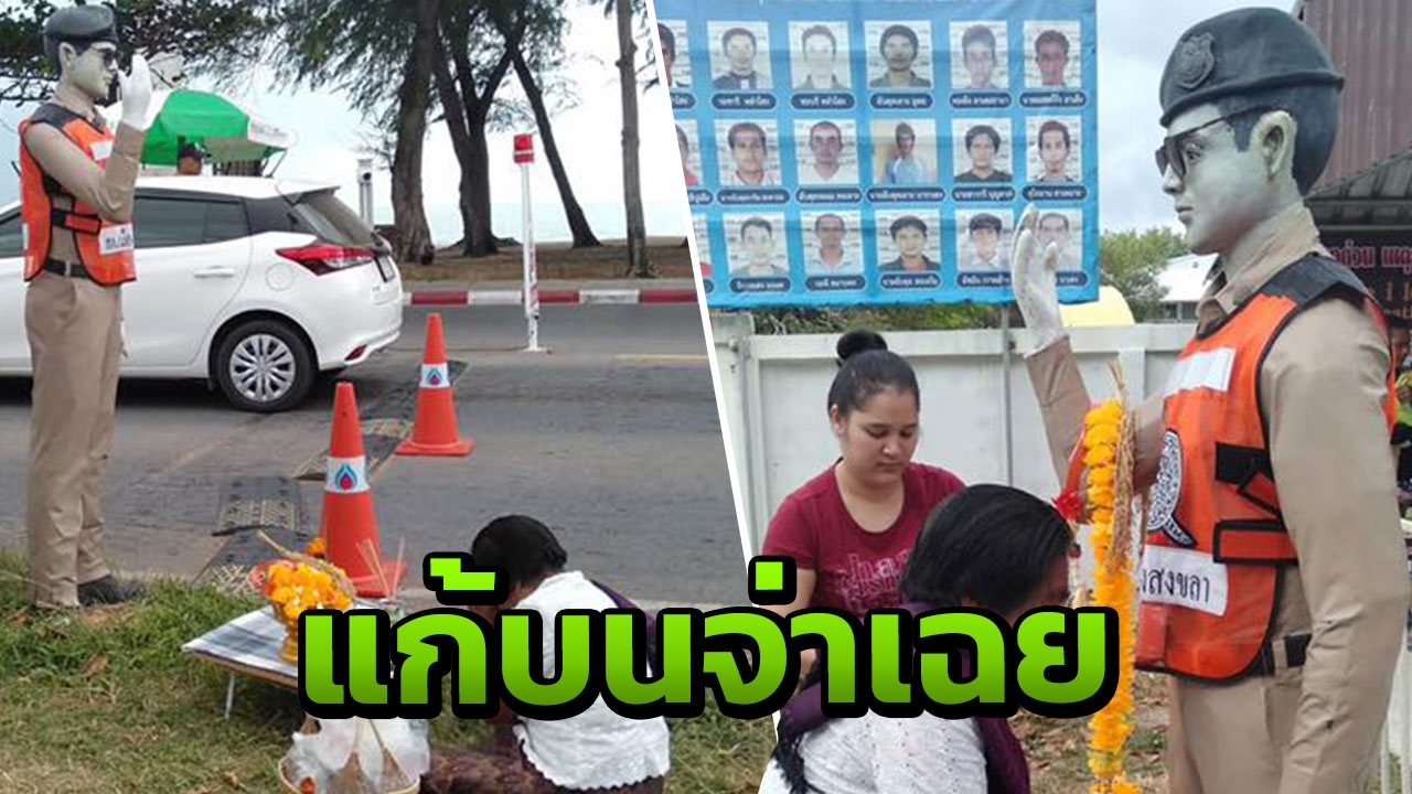 ผู้สื่อข่าวรายงานว่า พบแฟนเพจเฟซบุ๊ก งานราชการ โพสต์ภาพพร้อมข้อความว่า “ยายคนนี้บนจ่าเฉยไว้ถูกลอตเตอรี่ 3 งวดติดต่อกันแล้ว แถมบนลูกสอบราชการได้ เลยจัดแก้บนชุดใหญ่” ซึ่งโพสต์ดังกล่าวเป็นภาพของคุณยายคนหนึ่งตั้งโต๊ะมีของบูชาและยกมือไหว้หุ่นจ่าเฉยที่ใส่เสื้อ สภ.เมืองสงขลา อยู่