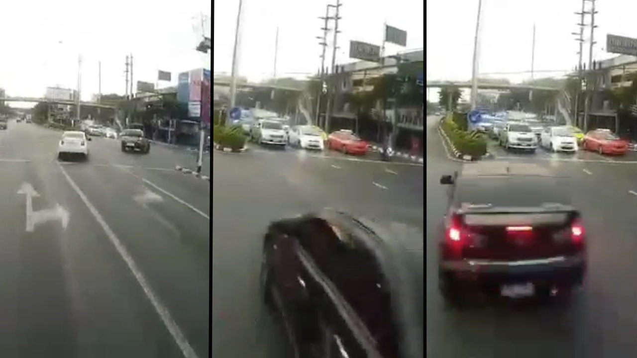 เพจรถเมล์ไทยแฟนคลับ เผยคลิปกล้องหน้าของรถเมล์สาย 75 ขณะกำลังจะเลี้ยวแยก กม.9 เจอเก๋งสีดำวิ่งตรงในเลนบังคับเลี้ยวขวา สุดท้ายเฉี่ยวชนกลางสามแยก