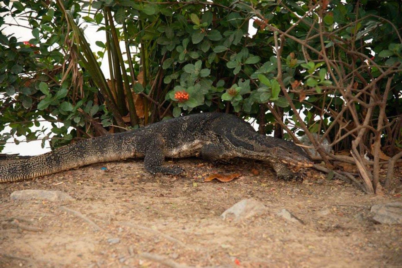 ส่วน ภาคอีสานบ้านเรา เรียกว่า แลน เป็นสัตว์เลื้อยคลานขนาดใหญ่ชนิดหนึ่ง รูปร่างคล้ายกิ้งก่าแต่มีขนาดใหญ่ ความยาว 2.5–3 เมตร มีลิ้นแยกเป็น 2 แฉก คล้ายกับงู ใช้สำหรับรับกลิ่น มีลาย ดอกสีเหลืองพาดขวางทางยาว