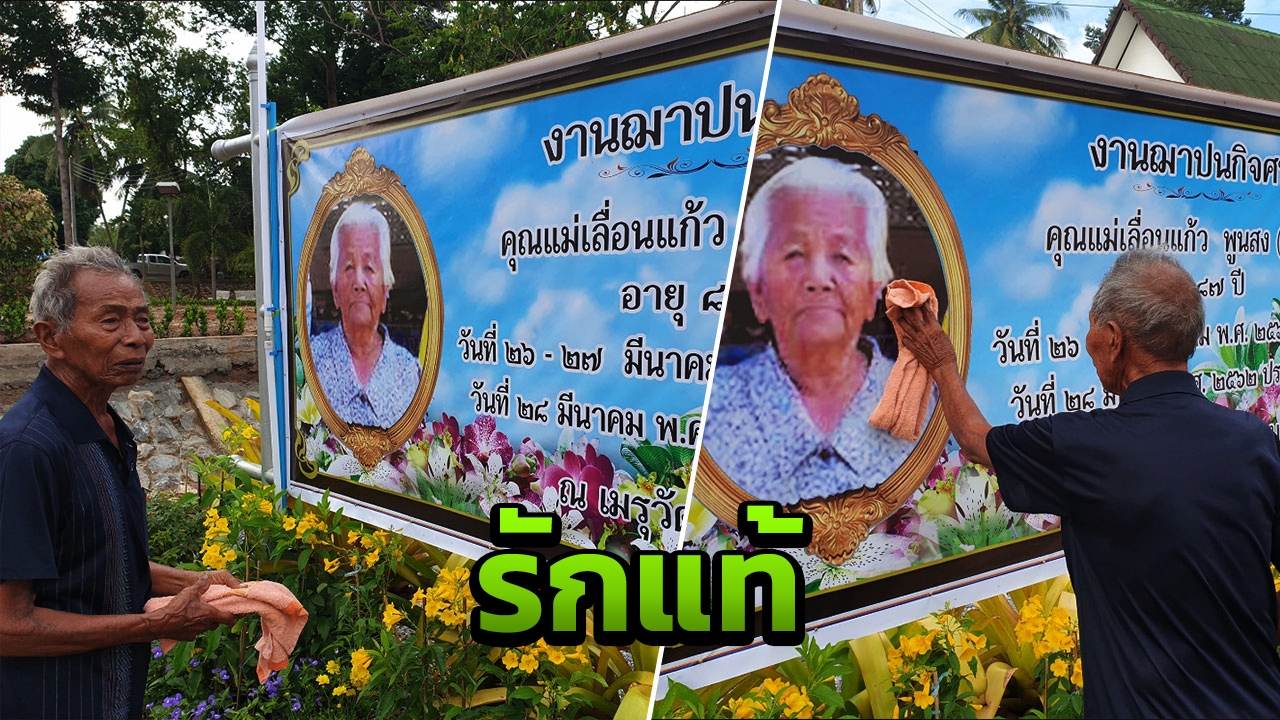 ต้นแบบรักแท้ คุณตา ตามเช็ดคราบน้ำฝน เกาะหน้ายาย บนไวนิลงานศพ พร่ำบอก "ไปดีนะ คิดถึง" พบครองรักกันมาเกือบ 70 ปี ...