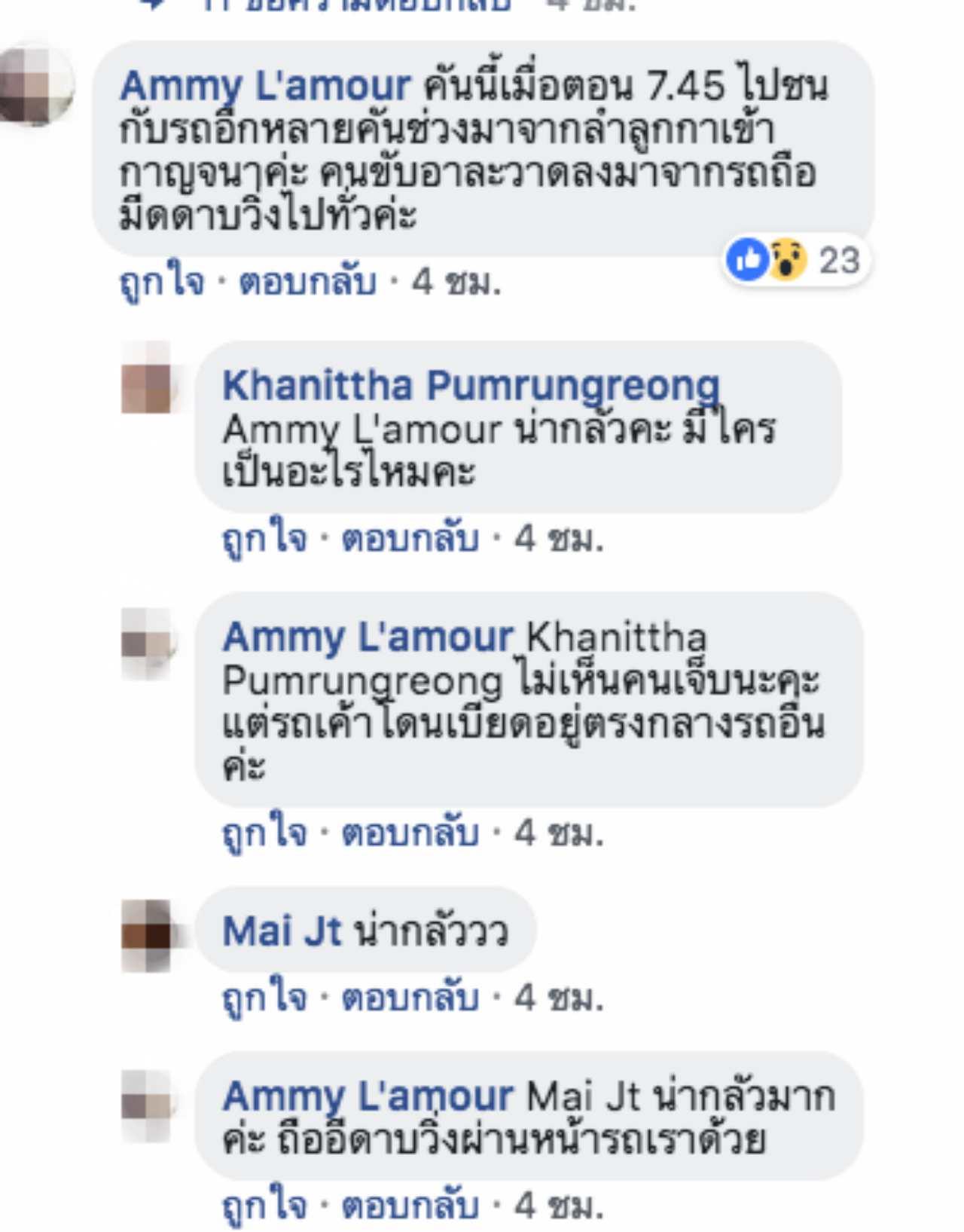 ทั้งนี้ เหตุการณ์ดังกล่าวเกิดขึ้นเมื่อเวลา 08.00 น. ที่ถนนวงแหวนกาญจนาภิเษกฝั่งตะวันออก มุ่งหน้าไปบางปะอิน ช่วงกม.31 รถเก๋งนิสสันมาร์ช สีชมพู ได้ขับย้อนศร วิ่งสวนทางผ่าเลนกลางถนนในระหว่างที่รถคันอื่นๆ ได้ขับมุ่งหน้าไปบางปะอิน ก่อนที่รถดังกล่าวจะถูกชน โดยมีรายงานว่า คนขับได้ถืออาวุธวิ่งไล่ไปทั่วบริเวณ ซึ่งเจ้าหน้าที่ได้เข้าระงับเหตุจนเข้าสู่ภาวะปกติแล้ว