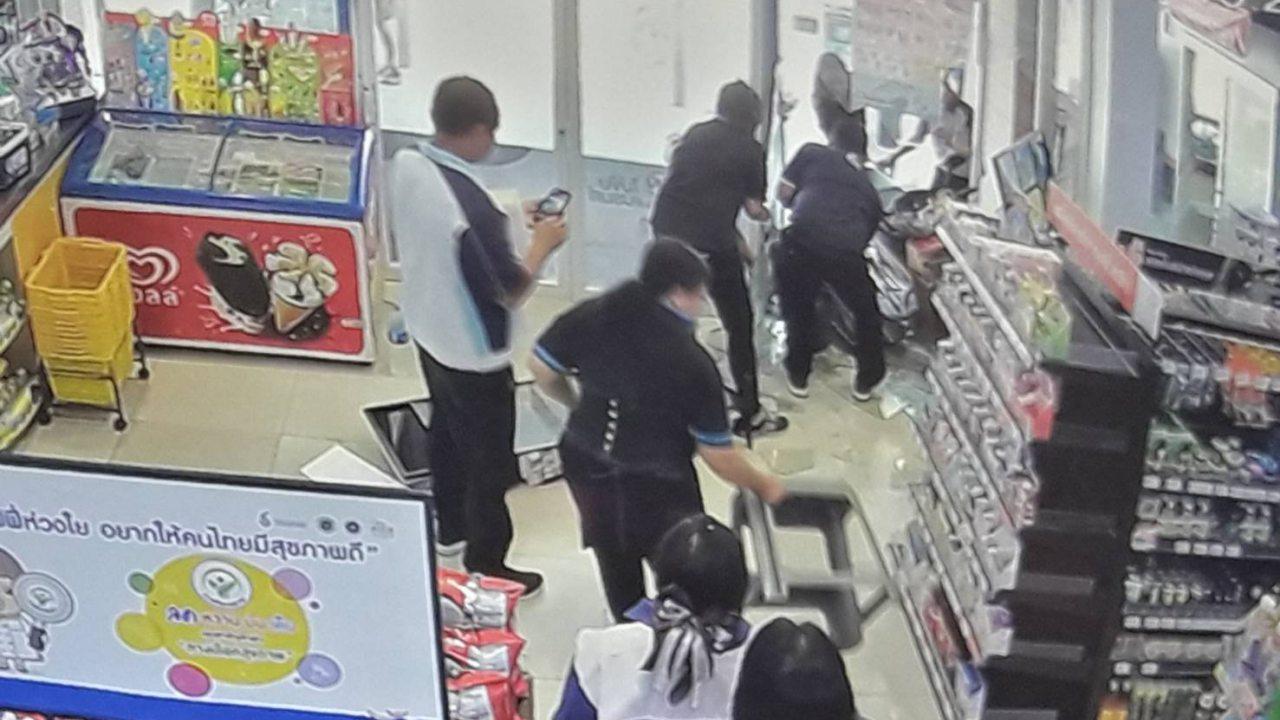 เบื้องต้น เจ้าหน้าที่ได้ตรวจสอบในที่เกิดเหตุ พร้อมตรวจสอบภาพจากกล้องวงจรปิด นำไปเป็นหลักฐาน ก่อนจะควบคุมตัวนายประจวบ ไปสอบสวนต่อที่ สภ.แหลมฉบัง ก่อนจะประสานญาติของนายประจวบ และผู้จัดการร้านสะดวกซื้อ ให้เข้ามาเจรจาค่าเสียหายกัน เพื่อสรุปกันต่อไป