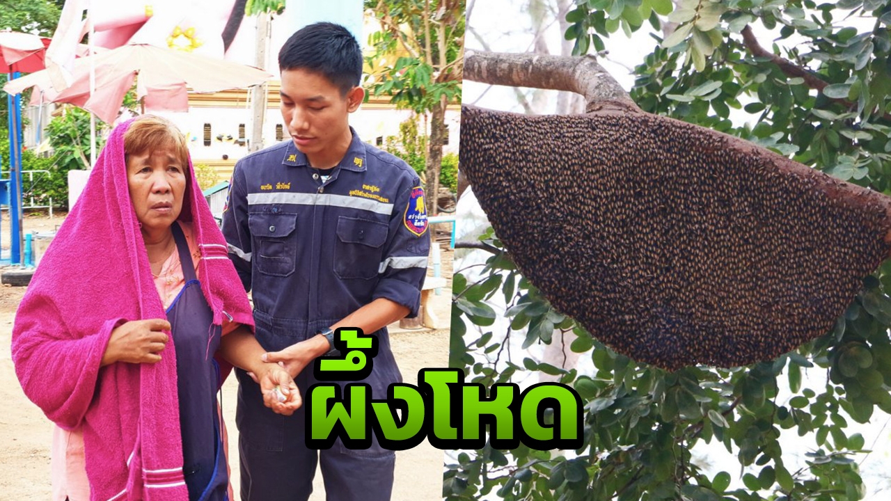 แม่ค้าไก่ย่างไม่ได้ตั้งใจ ปิ้งไก่แต่ควันไปรบกวนรังผึ้งหลวง แห่บินรุมต่อยโหด โชคดีพลเมืองดีเห็นพาซ้อนจักรยานยนต์หนีตาย