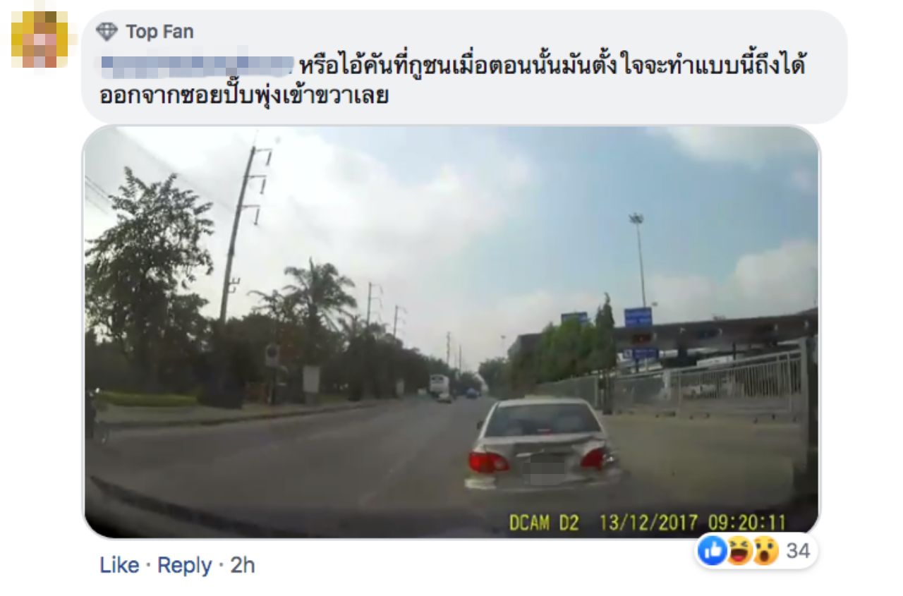ขณะที่ผู้ใช้เฟซบุ๊กรายหนึ่งได้โพสต์คลิปในช่องแสดงความคิดเห็นใต้โพสต์ว่า เคยเกิดอุบัติเหตุเพราะคนที่ขับรถในลักษณะนี้มาแล้ว.