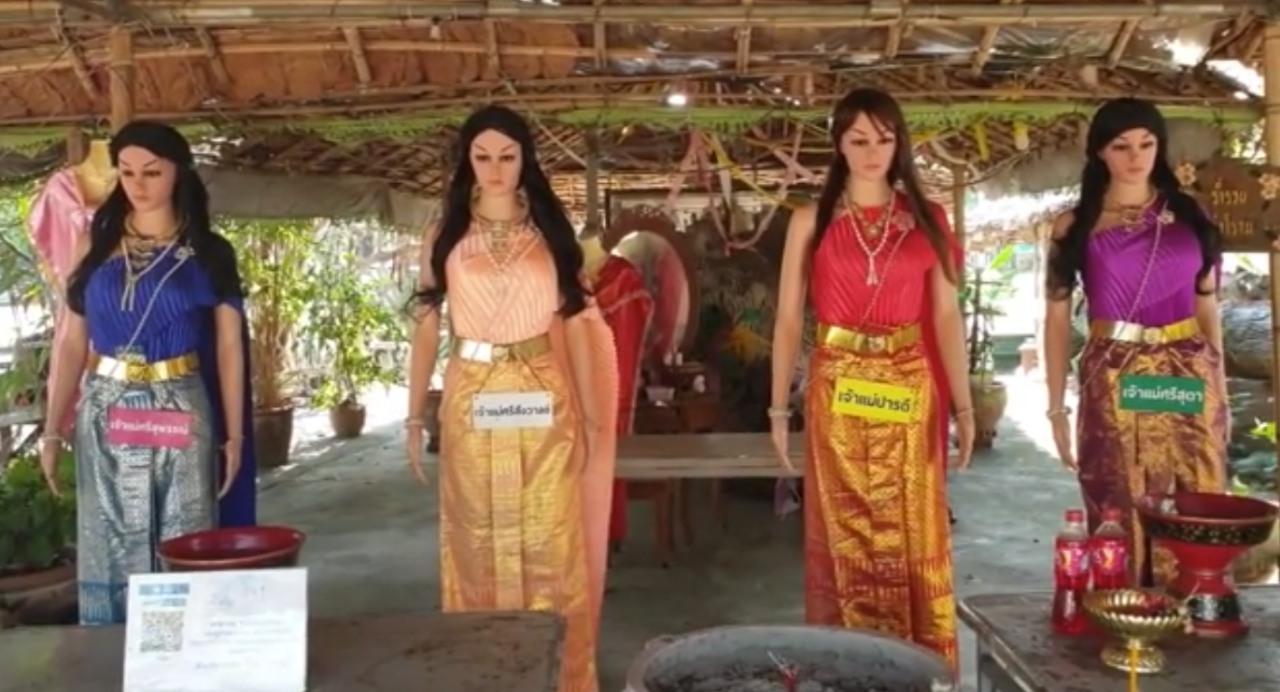 วัดศรีนวรัฐ เปลี่ยนชุดแต่งกาย 4 เจ้าแม่ตะเคียนทองพี่น้อง เจ้าแม่ศรีสุวรรณ์, เจ้าแม่ศรีสังวาลย์, เจ้าแม่ปารตี และเจ้าแม่ศรีสุดา จากชุดไทยเป็นแบบล้านนา คนเคยมาขอโชคลาภ สมหวังดั่งใจคิด