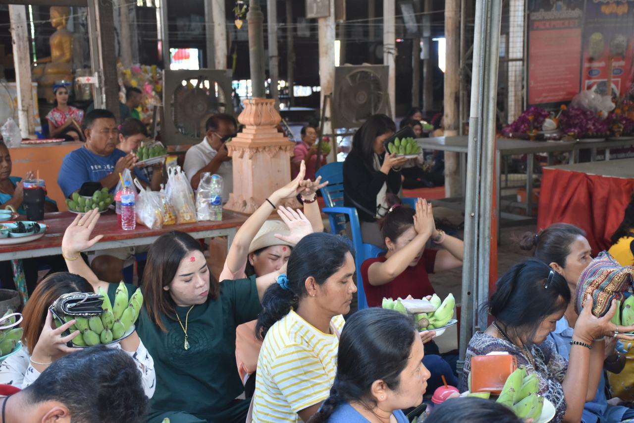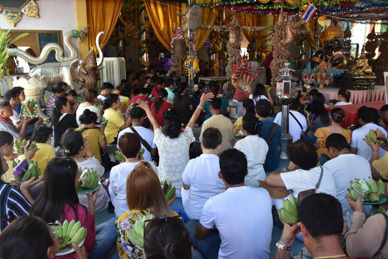 ทั้งนี้ ถือเป็นเบิกฤกษ์ปีใหม่ไทยหลังสงกรานต์เป็นครั้งแรก เพื่อเป็นสิริมงคล ทำให้สาธุชนที่ทราบข่าวต่างเดินทางกันมาร่วมเข้าพิธีเป็นจำนวนมาก ประกอบกับเป็นวันใกล้หวยออก จึงมีคนแห่มาร่วมพิธี โดยส่วนใหญ่ผู้เข้าพิธีจะนำกล้วยน้ำว้า หรือไข่ไก่สดมาเป็นเครื่องบวงสรวงถวาย