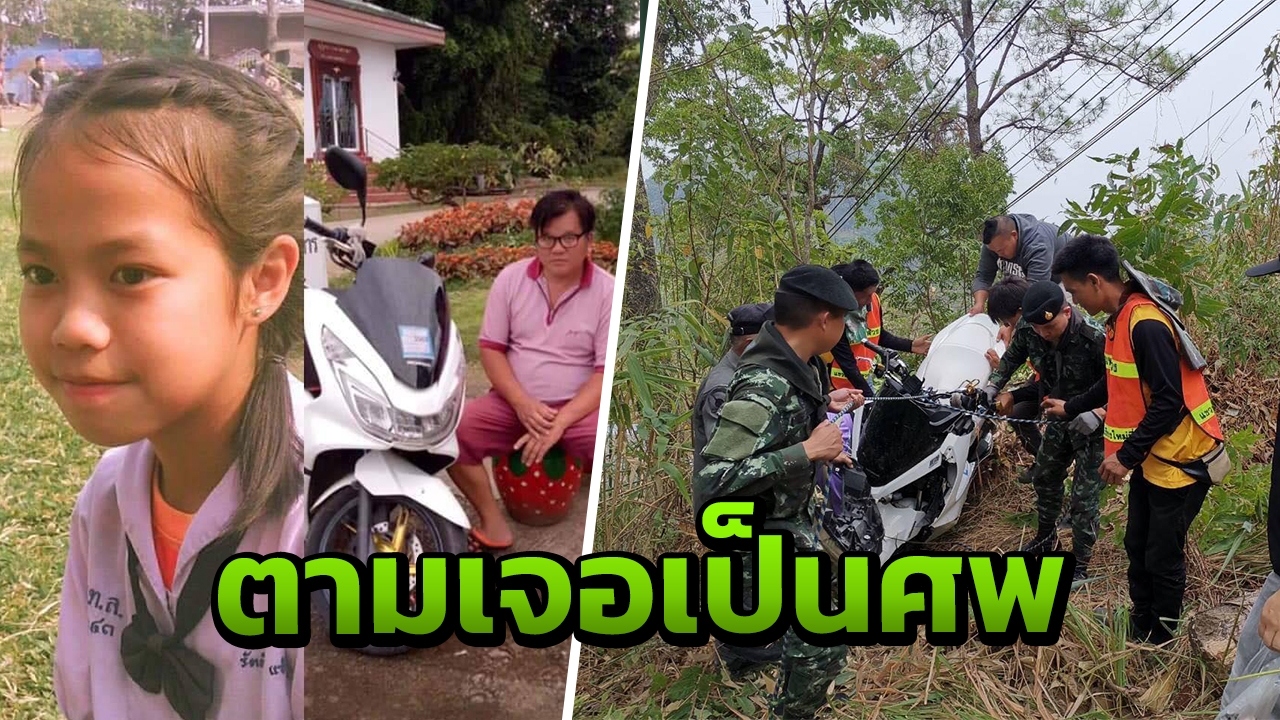 จนเช้าวันนี้ เจ้าหน้าที่ได้มีการระดมค้นหาตัวทั้งสองคนอีกครั้ง กระทั่งพบศพ 2 พ่อลูกอยู่ในโพรงหญ้าบริเวณกิโลเมตรที่ 16+125 ซึ่งเป็นทางโค้งลาดชัน และสลับโค้งหักศอก ชันสูตรเบื้องต้น พบพ่อขาหัก เสียชีวิต ส่วนลูกสาว เสียชีวิตสภาพคว่ำหน้าบนเนินดิน