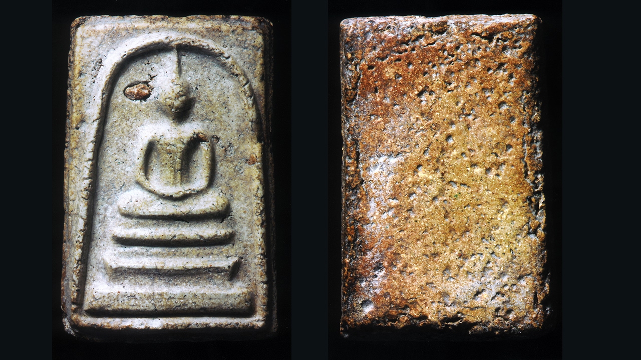 ละสายตาไปที่หัวไหล่ซ้าย “เม็ดขาวสองเม็ดย่อมเรียงติดกัน” ถ้าผิวพระเรียบเนียนนัก คล้ายพระใหม่ คล้ายพระปลอมนัก เมื่อมี “เม็ดขาว” ใหญ่เล็ก เป็นตัวช่วยเติมคะแนน “ความแท้” ให้เต็มร้อย
