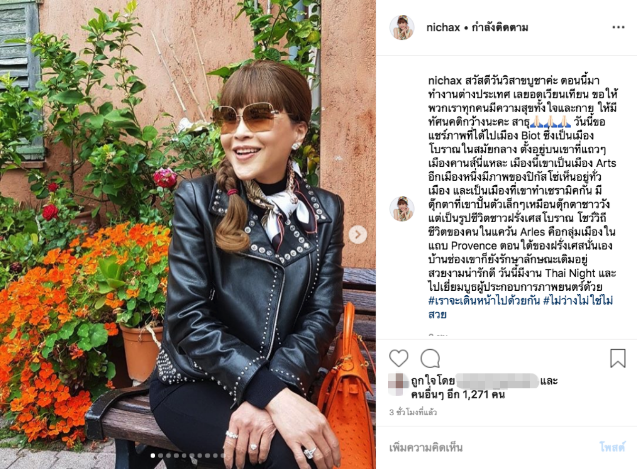 “สวัสดีวันวิสาขบูชาค่ะ ตอนนี้มาทำงานต่างประเทศ เลยอดเวียนเทียน ขอให้พวกเราทุกคนมีความสุขทั้งใจและกาย ให้มีทัศนคติกว้างนะคะ สาธุ วันนี้ขอแชร์ภาพที่ได้ไปเมือง Biot ซึ่งเป็นเมืองโบราณในสมัยกลาง ตั้งอยู่บนเขาที่แถวๆ เมืองคานส์นี่แหละ เมืองนี้เขาเป็นเมือง Arts อีกเมืองหนึ่งมีภาพของปิกัสโซ่เห็นอยู่ทั่วเมือง และเป็นเมืองที่เขาทำเซรามิกกัน มีตุ๊กตาที่เขาปั้นตัวเล็กๆ เหมือนตุ๊กตาชาววัง แต่เป็นรูปชีวิตชาวฝรั่งเศสโบราณ โชว์วิถีชีวิตของคนในแคว้น Arles คือกลุ่มเมืองในแถบ Provence ตอนใต้ของฝรั่งเศสนั่นเอง บ้านช่องเขาก็ยังรักษาลักษณะเดิมอยู่สวยงามน่ารักดี วันนี้มีงาน Thai Night และไปเยี่ยมบูธผู้ประกอบการภาพยนตร์ด้วย #เราจะเดินหน้าไปด้วยกัน #ไม่ว่างไม่ใช่ไม่สวย”