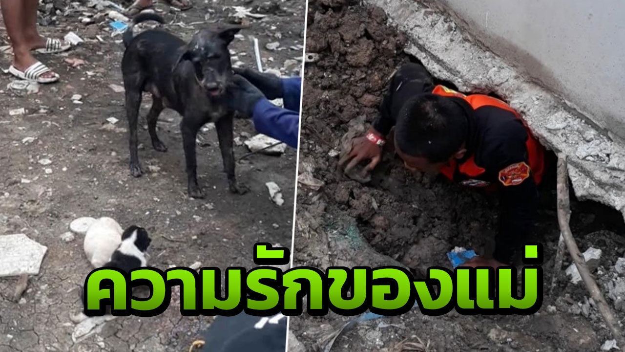 เปิดคลิปความรักของแม่ สุนัขวิ่งหากู้ภัย ให้เข้าช่วย 2 ลูกน้อย หลังฝนตกหนัก น้ำไหลเข้าท่วมโพรงใต้อาคารจนไม่สามารถคาบลูกออกมาได้...