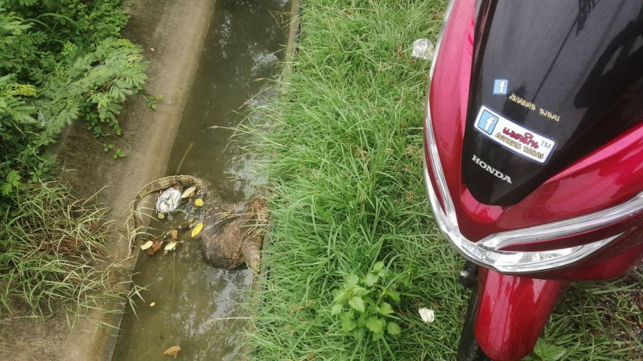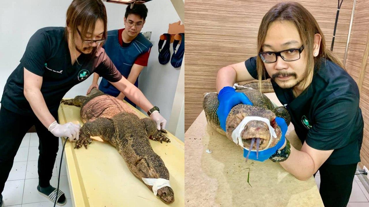 ทางด้าน เฟซบุ๊ก Taweesak Anunsiriwattana ซึ่งเป็นสัตวแพทย์จาก โรงพยาบาลสัตว์คลองหลวง ได้รับน้องไปดูแล พร้อมระบุว่า จากการประสานงานติดต่อมาจากผู้ใจดีในเขตนวนครผู้เห็นเหตุการณ์ว่ามีคนไล่ตีเหี้ยตัวนี้เพื่อไล่ให้ออกจากโรงงาน จึงหนีออกมานอนในคูระบายน้ำ