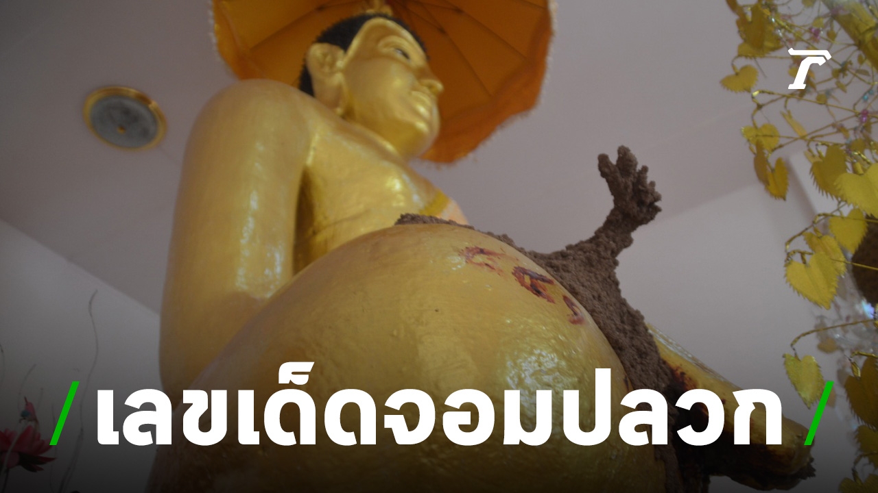 คอหวยแห่ขอ "เลขเด็ด" หลวงพ่อศรีสะอาด (วัดเลยหลง) หลังพบจอมปลวกคล้ายเศียรพญานาค 7 เศียร โผล่ระหว่างมือขวาและหน้าตักขวา ขณะที่ชาวบ้านเล่าตำนานความศักดิ์สิทธิ์