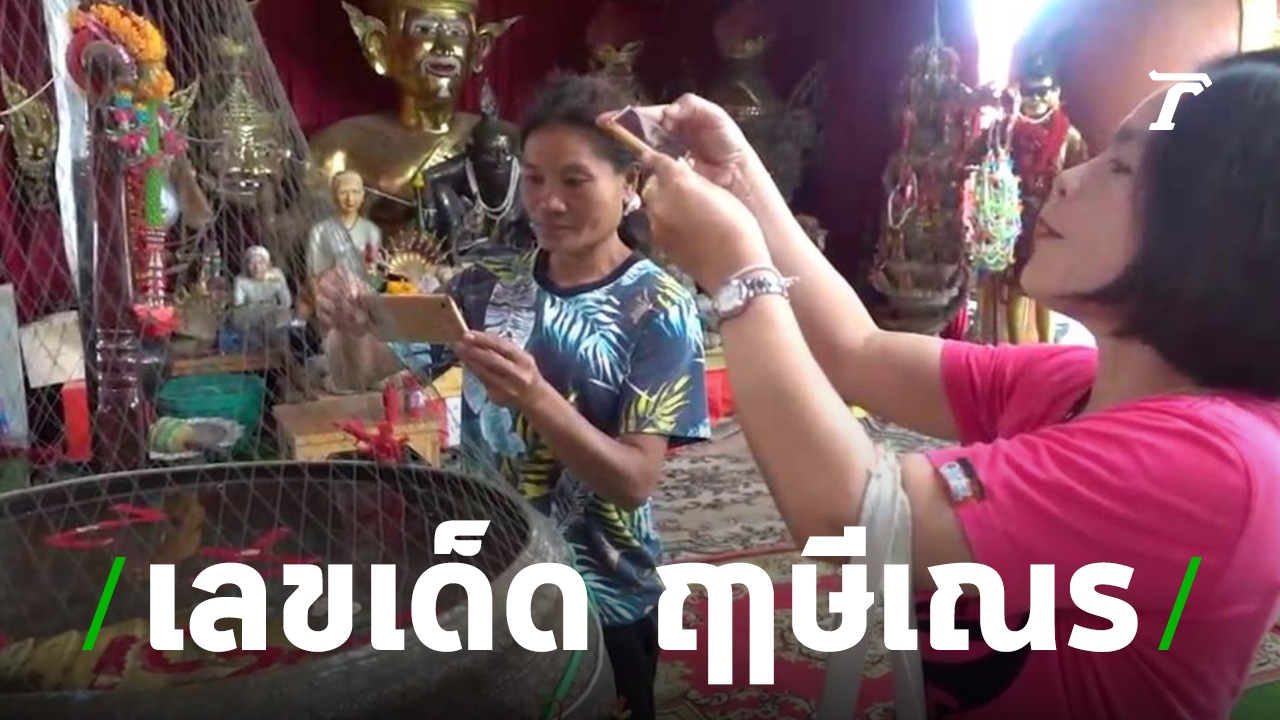 พร้อมส่องดูตัวเลขในอ่างน้ำมนต์ โดยประชาชนได้ใช้โทรศัพท์มือถือบันทึกภาพภายในอ่างน้ำมนต์หลายๆ มุมเอาไว้ดูตัวเลข จากน้ำตาเทียนสีแดง ปรากฏตัวเลข 6, 4, 2, 5, 1 และ 8
