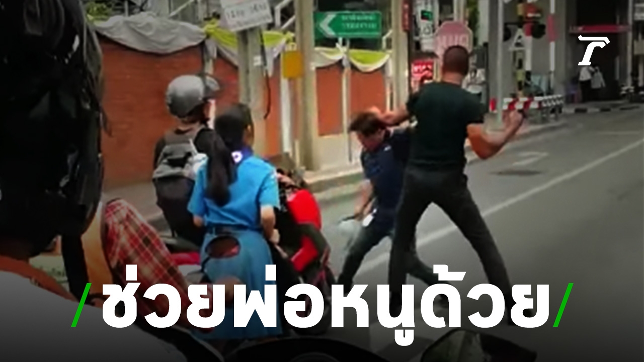 เด็กผู้หญิงร้องไห้โฮ หนุ่มขับแท็กซี่วางมวยกลางถนน คนห้ามซวยถูกหมวกกันน็อกเขวี้ยงใส่ ล่าสุดเด็กยังหวาดผวา ขณะที่คนอยู่ในเหตุการณ์ เผย คนขี่จยย.ส่อเริ่มก่อนทุบรถแท็กซี่ ด่ากันหยาบคาย ก่อนวางมวย