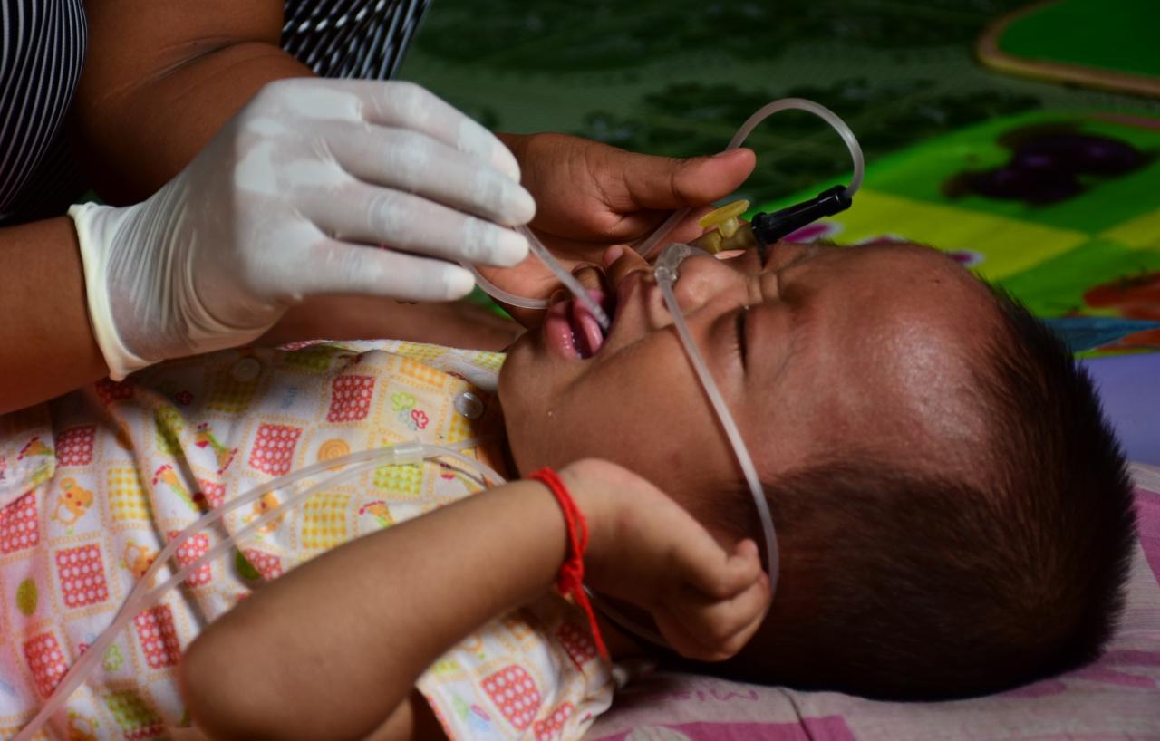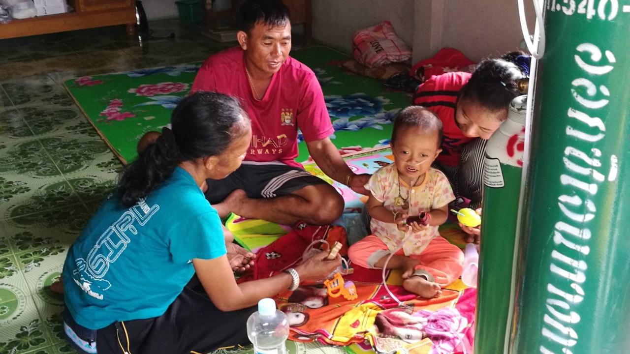 เมื่อออกจากโรงพยาบาลต้องต่อสายออกซิเจนช่วยหายใจตลอด 24 ชั่วโมง โดยทาง รพ.แม่สาย และอนามัยตำบลโป่งผาให้ยืมถังขนาดใหญ่ 2 ถัง ส่วนถังขนาดเล็กหาซื้อมาเองใส่ท้าย รถจักรยานยนต์พาลูกไป รพ.เชียงรายประชานุเคราะห์ สิ่งที่ต้องการช่วยเหลือ ตอนกลางคืนไฟฟ้าตกปั๊มเครื่องออกซิเจนไม่ได้ ต้องเอาถังไปเติม รพ.แม่สาย 2 วันครั้ง เคยพาลูกและถังออกซิเจนขึ้นรถตู้สาธารณะ ปรากฏคนขับไม่ให้ขึ้น อ้างว่า เกรงถังออกซิเจนจะระเบิดเป็นอันตรายต่อคนอื่น