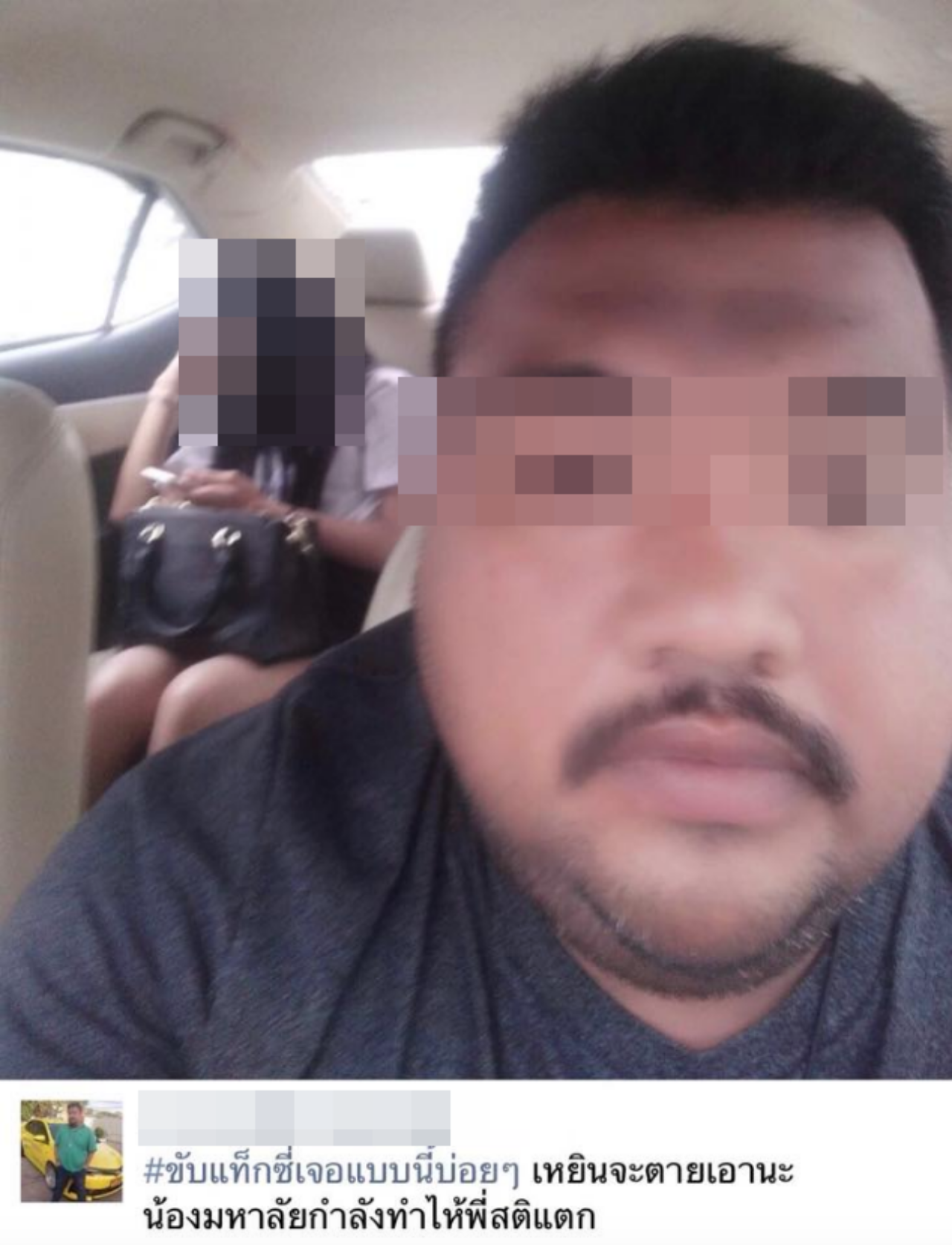 เพจเฟซบุ๊ก “Taxi report TH” โพสต์ข้อความเตือนภัยผู้โดยสารสาวที่ใช้บริการรถแท็กซี่ ทะเบียน ทห-5642 กทม. โดยมีภาพคนขับรถแท็กซี่ ที่ถ่ายเซลฟี่โดยมีผู้โดยสารนั่งอยู่ด้านหลัง พร้อมระบุข้อความว่า แท็กซี่สีเหลืองคันหนึ่งมีการแสดงพฤติกรรมที่ไม่เหมาะสมกับผู้โดยสารหญิง ด้วยการแอบถ่ายเวลาเผลอ หลับ หรือนั่งเล่นโทรศัพท์มือถือ แล้วนำภาพไปเผยแพร่บนเฟซบุ๊กส่วนตัวที่เปิดสาธารณะ แล้วพูดแซวเล่นกับเพื่อน ซึ่งมีหญิงสาวตกเป็นเหยื่อนับสิบราย ทั้งข้าราชการ นักศึกษา รวมไปถึงสาวออฟฟิศ และมีการดัดแปลงสภาพรถ ผิดพระราชบัญญัติขนส่งทางบกอีกด้วย