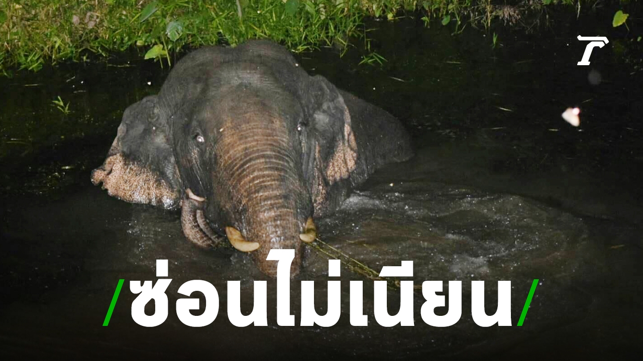 "ช้างป่าเขาใหญ่" ลอยตัวมาในน้ำ หวังเข้ากินผลไม้ในสวนชาวบ้าน แต่ไม่รอดพ้นสายตาเจ้าหน้าที่ สุดท้ายต้องถอยร่นเข้าป่าตามเดิม