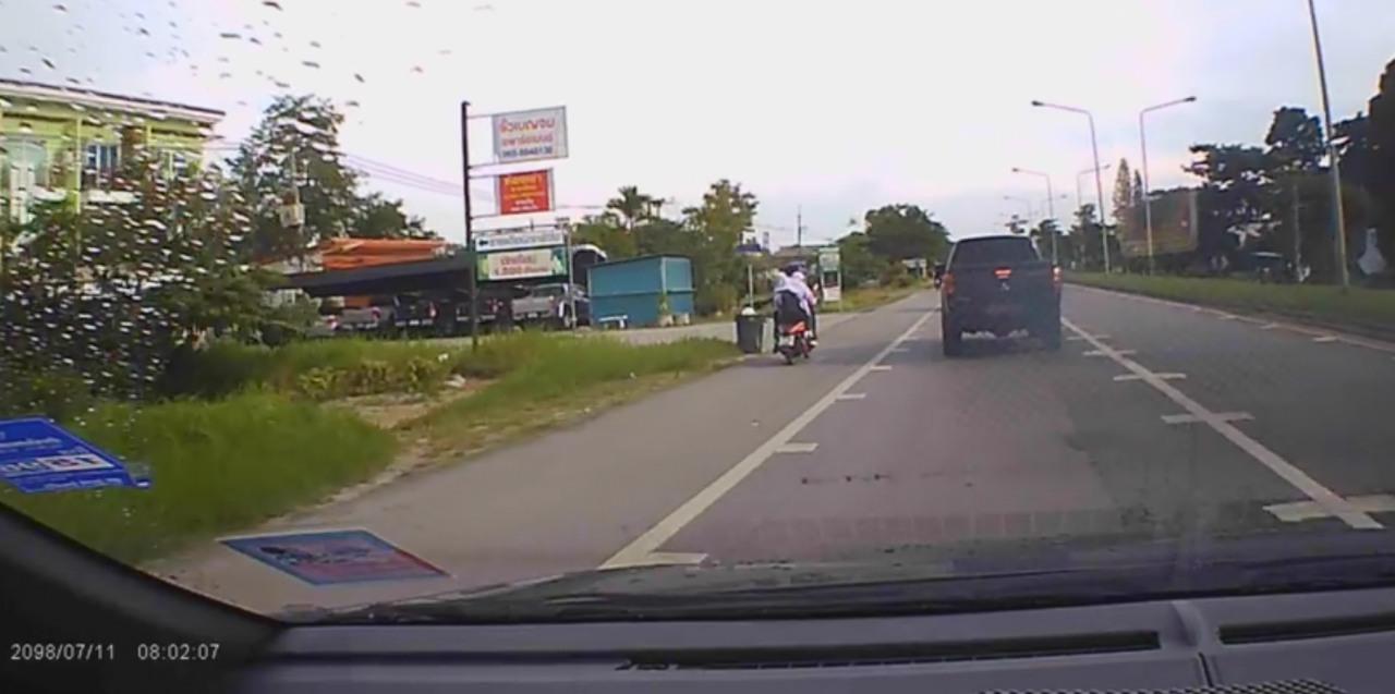 "ลูกสาว เล่าว่า รถกระบะคันดังกล่าว เลี้ยวซ้ายเข้าซอยกะทันหันเบียดรถจักรยานยนต์จนล้ม ซึ่งรถกระบะคันดังกล่าวไม่ได้จอดลงมาสอบถาม แต่กลับขับรถเข้าไปในซอยเหมือนไม่มีอะไรเกิดขึ้น หลังเกิดเหตุแม่ไม่ได้พาลูกสาวไปแจ้งความ เพราะลูกสาวทั้ง 3 คน ไม่ได้บาดเจ็บมากนัก มีเพียงลูกสาวคนโตที่มีอาการปวดแขนเล็กน้อย แม่ก็ให้ลูกกินยาแก้ปวดแล้ว พอแม่เห็นคลิปก็ตกใจ และเสียใจอย่างมากที่คนขับรถกระบะคันดังกล่าวไม่มีน้ำใจที่จะจอดรถลงมาดูหรือสอบถามลูกสาวทั้ง 3 คน ว่าบาดเจ็บมากไหม หรือแม้แต่คำขอโทษก็ไม่มีเช่นกัน"