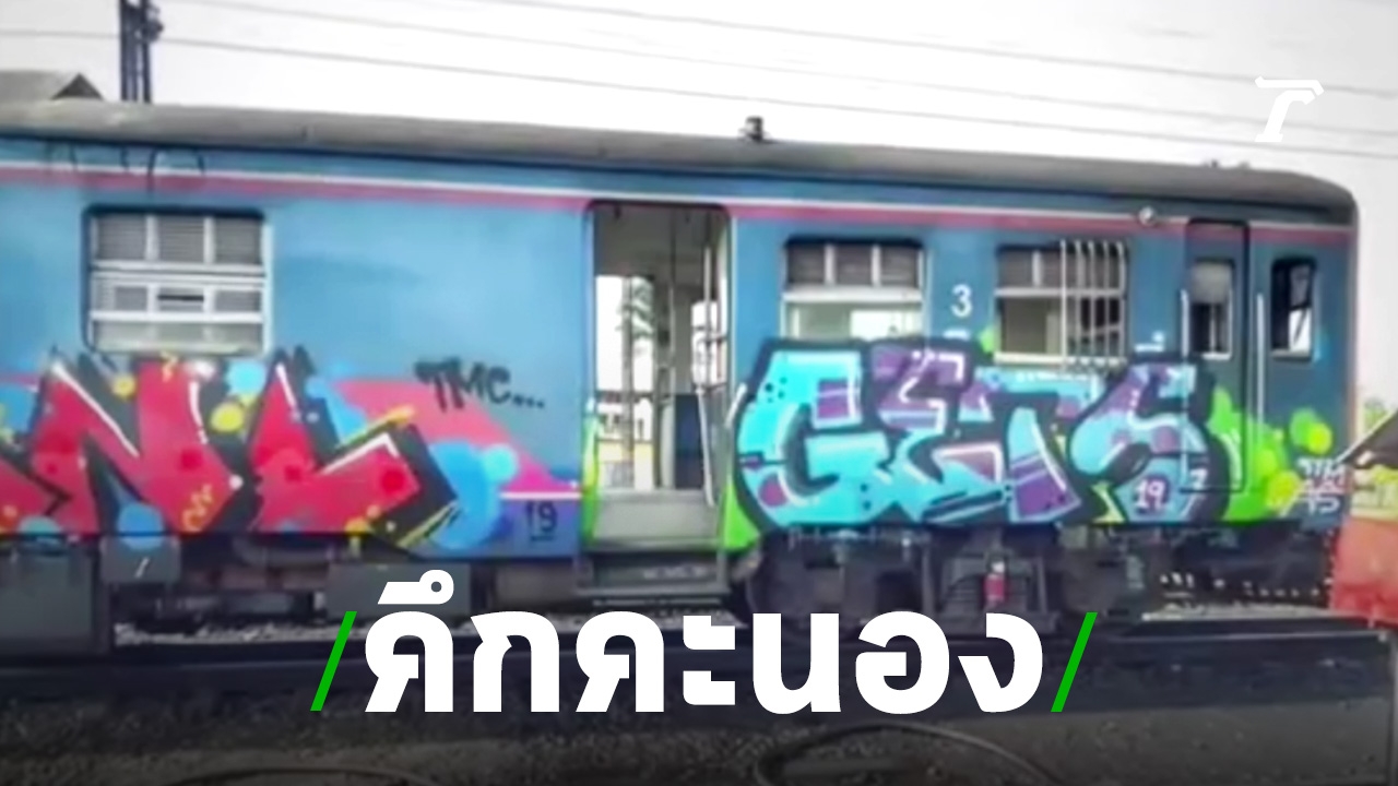 เจ้าหน้าที่แกะรอย รวบหนุ่มวัย 27 มือกราฟฟิตี้ พ่นสีโบกี้ขบวนรถไฟชุมทางบัวใหญ่ อ้างคึกคะนอง ก่อเหตุคนเดียว