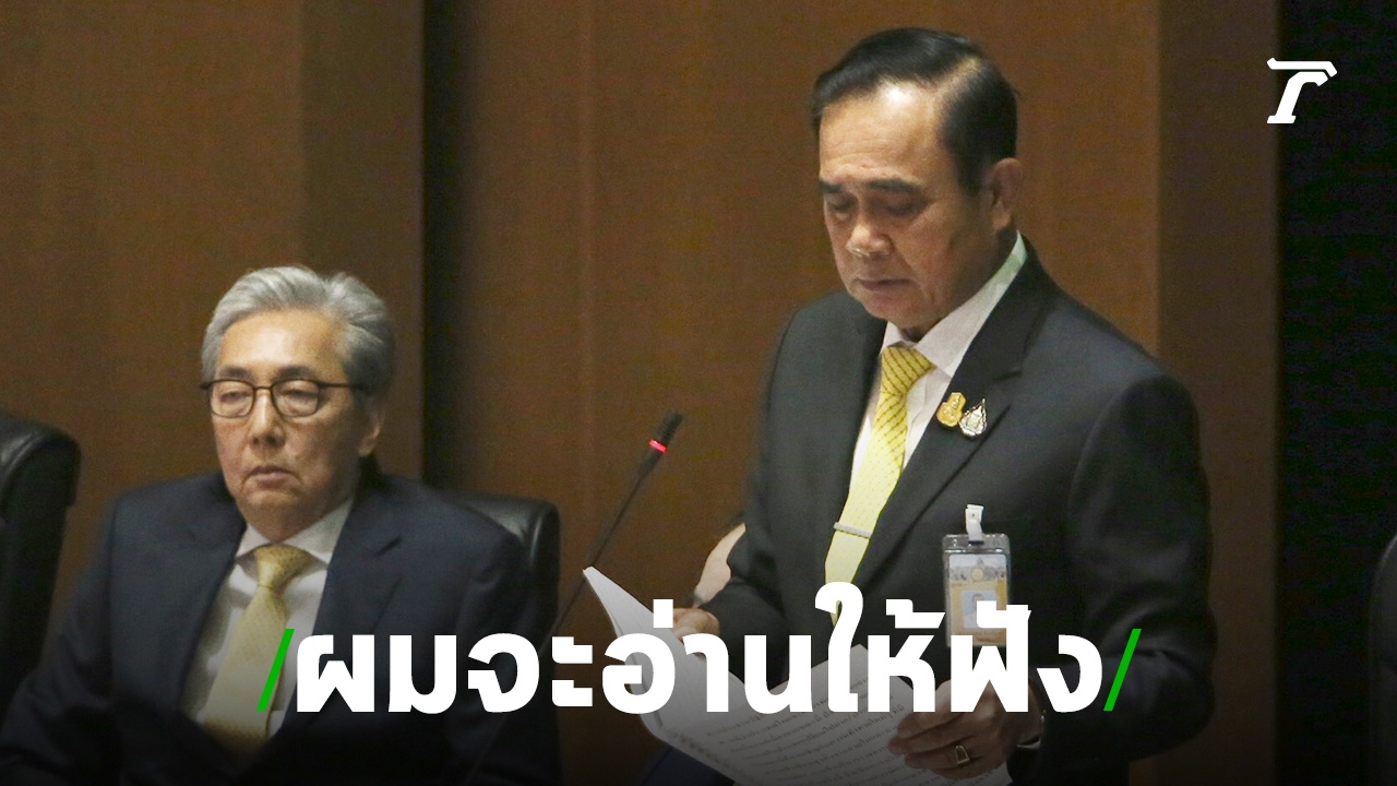 "ผมไม่ทะเลาะกับพวกท่านอยู่แล้ว เอาล่ะ ผมจะอ่านให้ฟัง อ่านภาษาไทยเนี่ยแหละ คุณเปิดหนังสือและอ่านตามผมไปด้วย" พล.อ.ประยุทธ์ กล่าว