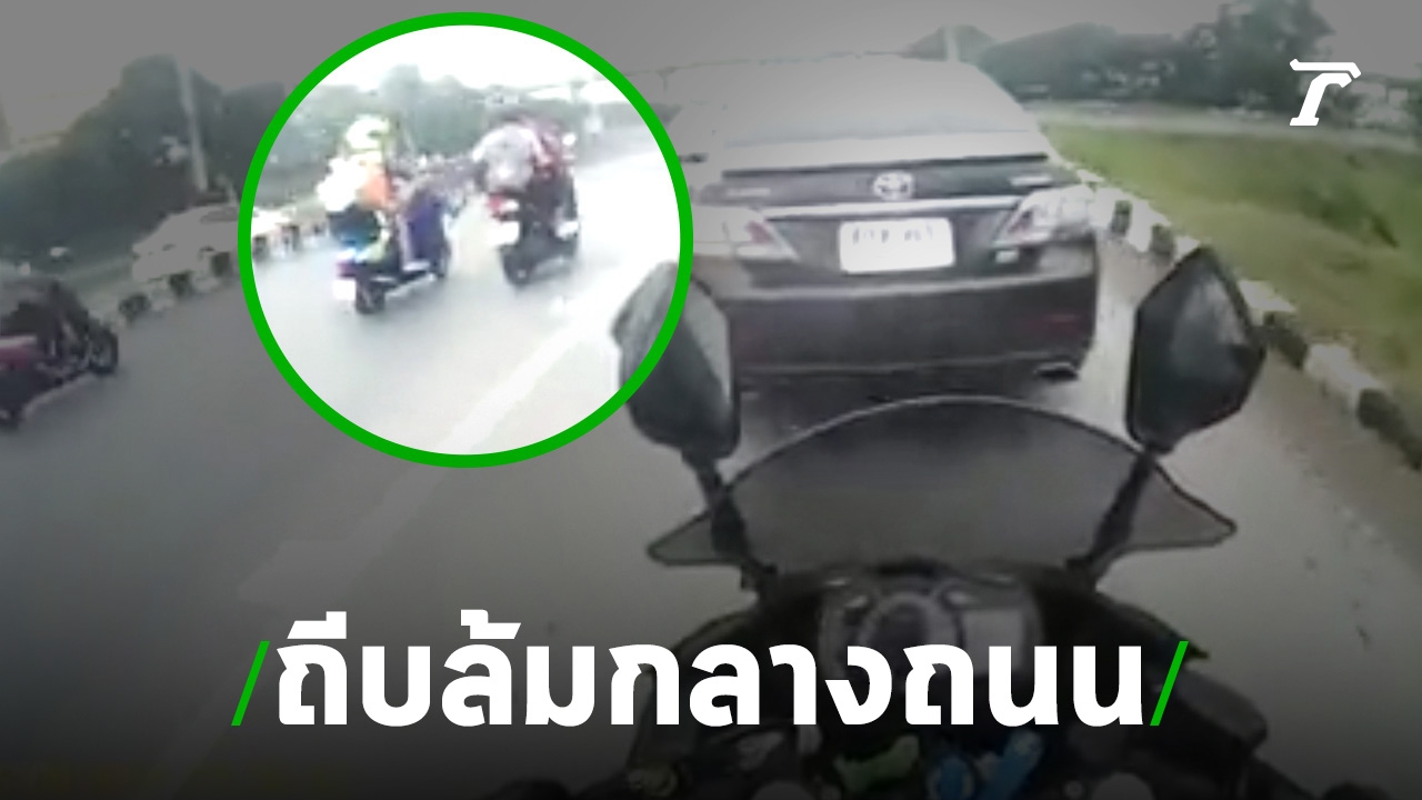 วินสุดโหด ถีบจักรยานยนต์ล้มกลิ้งกลางถนน เส้นรังสิต-นครนายก ทำให้ผู้ขับขี่และคนซ้อนบาดเจ็บ วอนโซเชียลช่วยตามคนทำผิดมาดำเนินคดีตามกฎหมาย