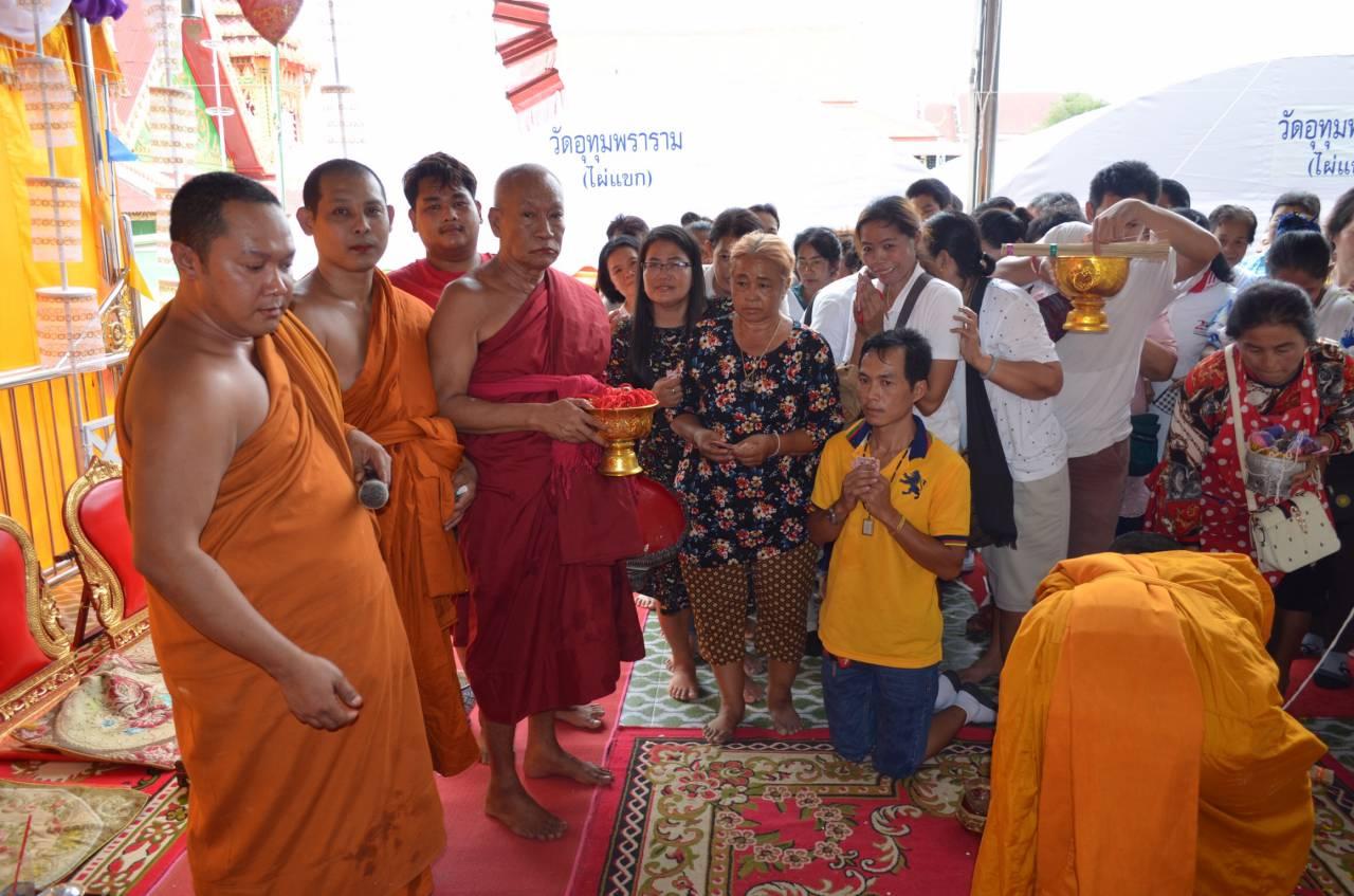 จากนั้นช่วงบ่าย พระครูยติธรรมมานุยุต หรือพระอาจารย์แป๊ะ วัดสว่างอารมณ์ พระเกจิชื่อดังของ จ.นครปฐม ได้เป็นประธานจุดเทียนพร้อมอธิษฐานจิต ในพิธีพุทธาภิเษก หลวงพ่อสำเร็จทันใจก้าวหน้า พระอุปคุต และพ่อขุนช้าง มหาเศรษฐีเมืองสุพรรณบุรี เพื่อไว้มอบให้แก่ผู้ที่ร่วมทำบุญเป็นเจ้าภาพกฐินสามัคคีของวัดอุทุมพราราม ประจำปี 2562