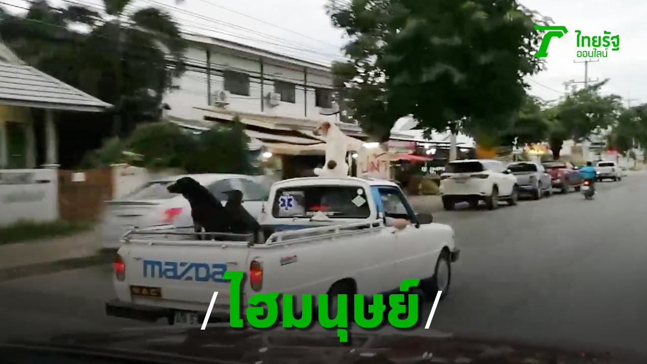 ทั้งนี้ ในคลิปนาทีที่ 0.40 เป็นต้นไป จะเห็นได้ว่าน้องหมา 3 ตัวนั่งอยู่บนรถกระบะคันเล็กคันหนึ่ง โดยน้องหมาตัวสีขาวนั่งอยู่บนหลังคาแบบสบายๆ