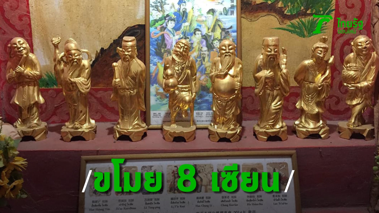 โดยคนใจบาปเข้ามาขโมยองค์เทพ 8 เซียน ไปไม่เหลือสักองค์ จึงมาแจ้งความร้องทุกข์ ให้ตำรวจสืบสวนสอบสวนเอาตัวผู้กระทำผิดมาลงโทษตามกฎหมาย