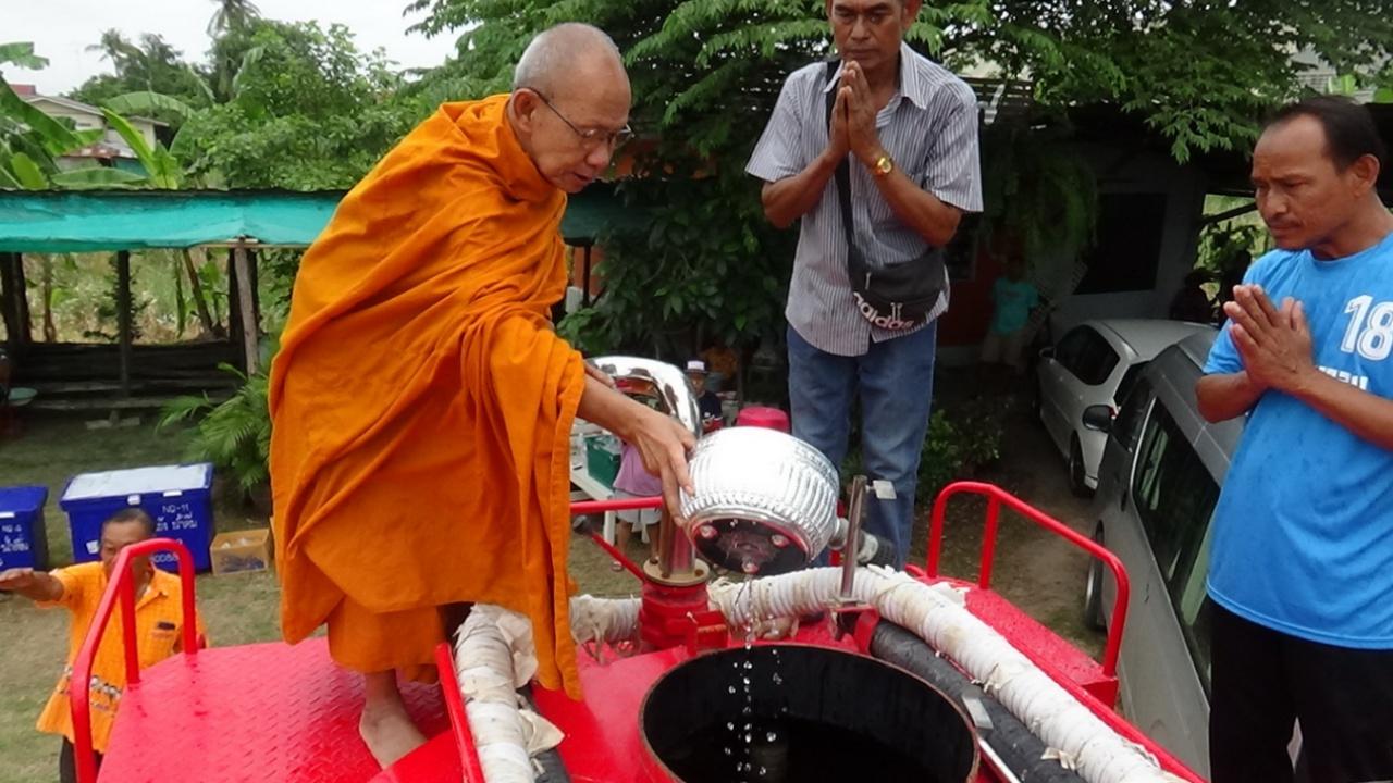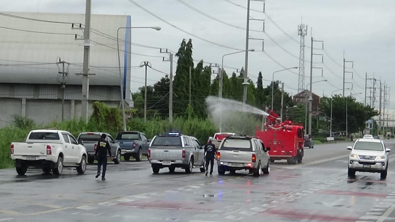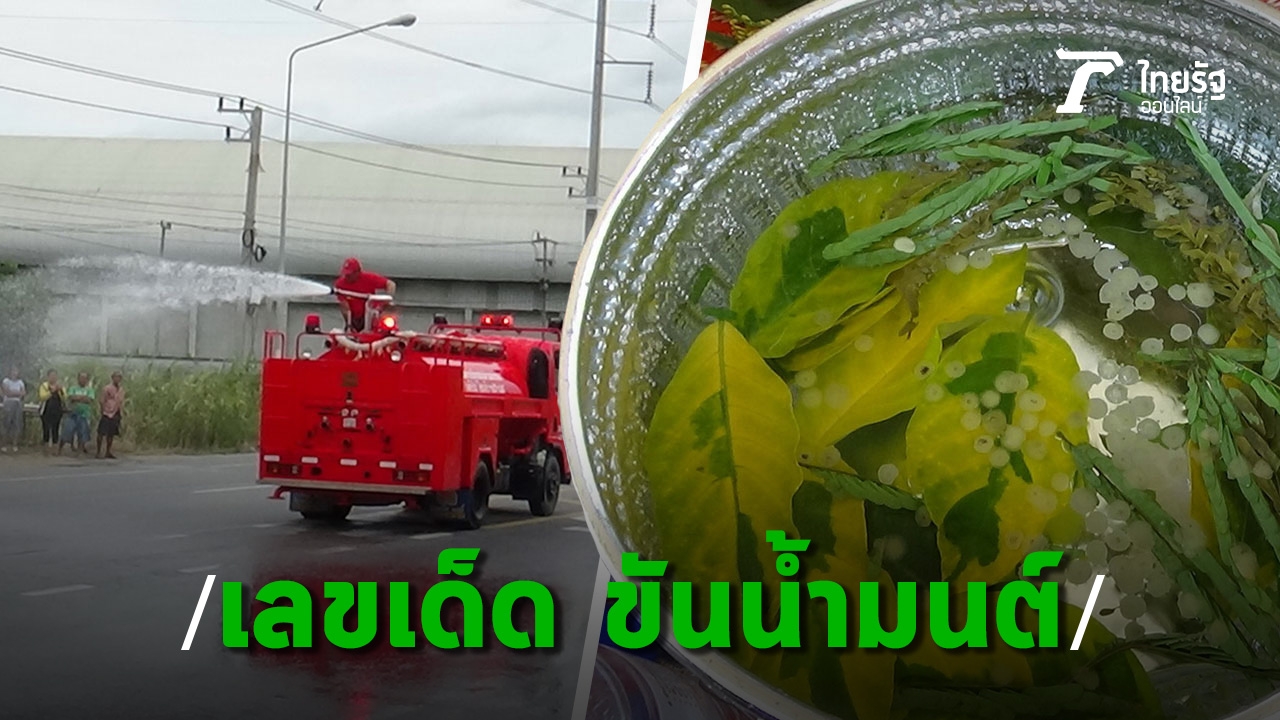 ชาวบ้านนิมนต์พระสงฆ์นำน้ำมนต์ใส่รถดับเพลิงฉีดประพรมบนถนน สี่แยกวัดพายทอง ระยะทาง 1 กิโลเมตร เพื่อความสิริมงคล หลังเกิดอุบัติเหตุบ่อย ด้านคอหวยไม่พลาดส่องขันน้ำมนต์หวัง "เลขเด็ด"