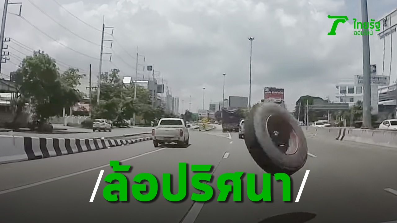 เปิดคลิปนาทีระทึก หนุ่มขับรถอยู่ดีๆ เจอล้อรถบรรทุกปริศนา กระเด็นข้ามเลนกลิ้งเฉียดผ่านหน้ารถ โชคดีรอดหวุดหวิด หวังเตือนคนใช้รถระมัดระวัง