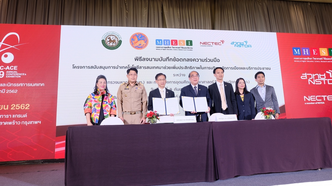 เมื่อวันที่ 9 ก.ย.62 ที่ศูนย์เทคโนโลยีอิเล็กทรอนิกส์และคอมพิวเตอร์แห่งชาติ (เนคเทค) สำนักงานพัฒนาวิทยาศาสตร์และเทคโนโลยี แห่งชาติ (สวทช.) กระทรวงการอุดมศึกษา วิทยาศาสตร์ วิจัยและนวัตกรรม (อว.) เปิดงานประชุมวิชาการและนิทรรศการของเนคเทคประจำปี 2562 (NECTEC Annual Conference and Exhibitions 2019: NECTEC-ACE 2019) พร้อมเปิดตัว AI FOR THAI โดยได้รับการสนับสนุนจาก CAT INET pantip.com และ KBTG รวมทั้งได้รับความร่วมมือจากอีกหลายหน่วยงาน