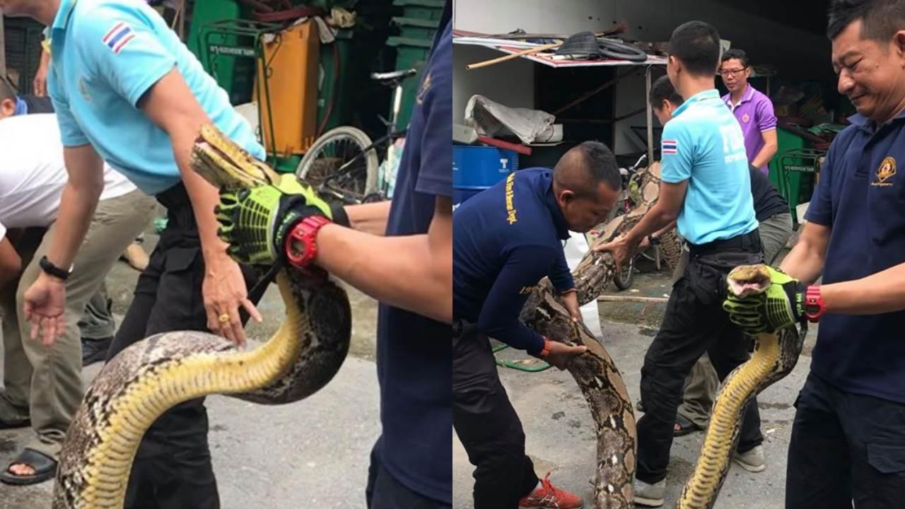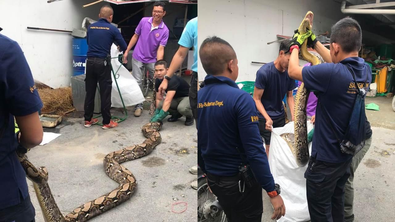 ชาวเน็ตแชร์กันเพียบ "งูเหลือม" ตัวอย่างใหญ่หนัก 50 กิโลกรัม ตัวยาว 5.5 เมตร เจ้าหน้าที่สำนักป้องกันฯ กทม. เตรียมนำส่งกรมอุทยานแห่งชาติฯ