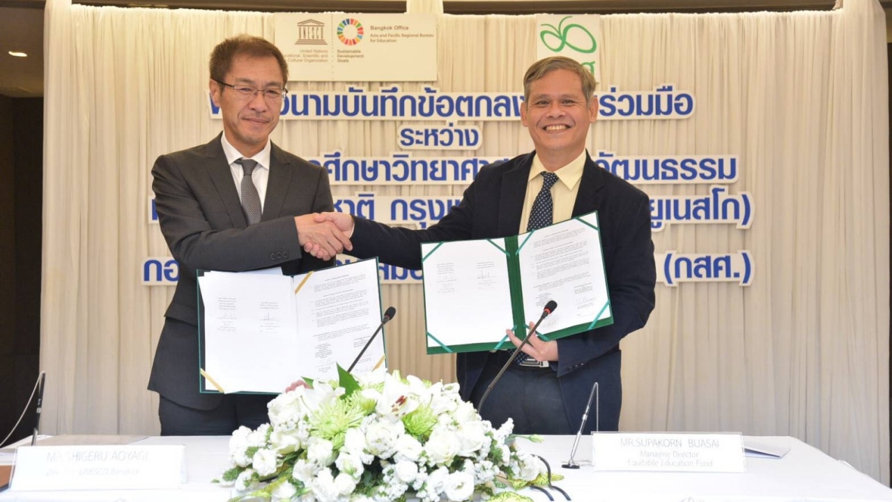 เมื่อวันที่ 23 ก.ย.62 ที่โรงแรมเซ็นทาราแกรนด์ ลาดพร้าว ได้มีพิธีลงนามบันทึกข้อตกลงความร่วมมือระหว่างกองทุนเพื่อความเสมอภาคทางการศึกษา (กสศ.) กับองค์การการศึกษา วิทยาศาสตร์และวัฒนธรรมแห่งสหประชาชาติ กรุงเทพฯ (ยูเนสโก) เพื่อสร้างความเสมอภาคทางการศึกษาและการบรรลุเป้าหมายการพัฒนาที่ยั่งยืนด้านการศึกษา (SDG4) ทั้งในประเทศไทยและเอเชียแปซิฟิก พร้อมจับมือ กระทรวงศึกษาธิการ กระทรวงพัฒนาสังคมและความมั่นคงของมนุษย์ กระทรวงมหาดไทย ยูเนสโก องค์การยูนิเซฟ และองค์การช่วยเหลือเด็ก จัดการประชุมวิชาการนานาชาติเพื่อความเสมอภาคทางการศึกษา: ปวงชนเพื่อการศึกษา"(All for Education) ระดับภูมิภาคเอเซียแปซิฟิกในปี 2563 (2020) ในโอกาสครบรอบ 30 ปี ปฏิญญาจอมเทียน เพื่อช่วยกันวางยุทธศาสตร์นับถอยหลัง 10 ปีสู่การบรรลุเป้าหมายการพัฒนาที่ยั่งยืนของโลกด้านการศึกษา (SDG4) ให้สำเร็จภายในปี 2030 นี้